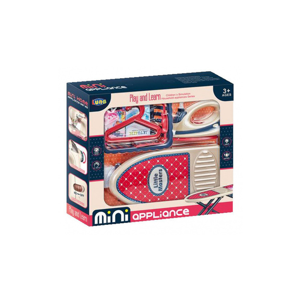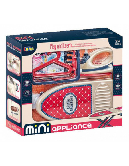Luna Mini Home strijkplankset Met deze leuke set wordt strijken zelfs voor de allerkleinsten een eitje. Het strijkijzer is speciaal voor kinderen bedoeld en met de lichteffecten lijkt hij net echt! Het strijkijzer heeft een uitneembaar waterreservoir en als je deze vult met water sprayt hij waternevel. Een wasmand elke ook als opbergmand op de strijkplank kan worden gemonteerd is inbegrepen, net zoals twee hangers en twee miniatuur productverpakkingen. Specificaties: Kleur: blauw, roze, wit Geslacht: junior Materiaal: kunststof Afmetingen strijkplank: 36 x 17,5 x 24 cm (lxbxh) Afmetingen strijkijzer: 21 x 10 x 12 cm (lxbxh) Afmetingen wasmand: 22 x 15,5 x 8 cm (lxbxh) Voedingstype: 2x AA -batterijen (niet meegeleverd) Leeftijd: vanaf 3 jaar Inhoud: 1 Strijkijzer 1 Strijkplank 1 Wasmand 2 Kledinghangers 2 Productverpakkingen