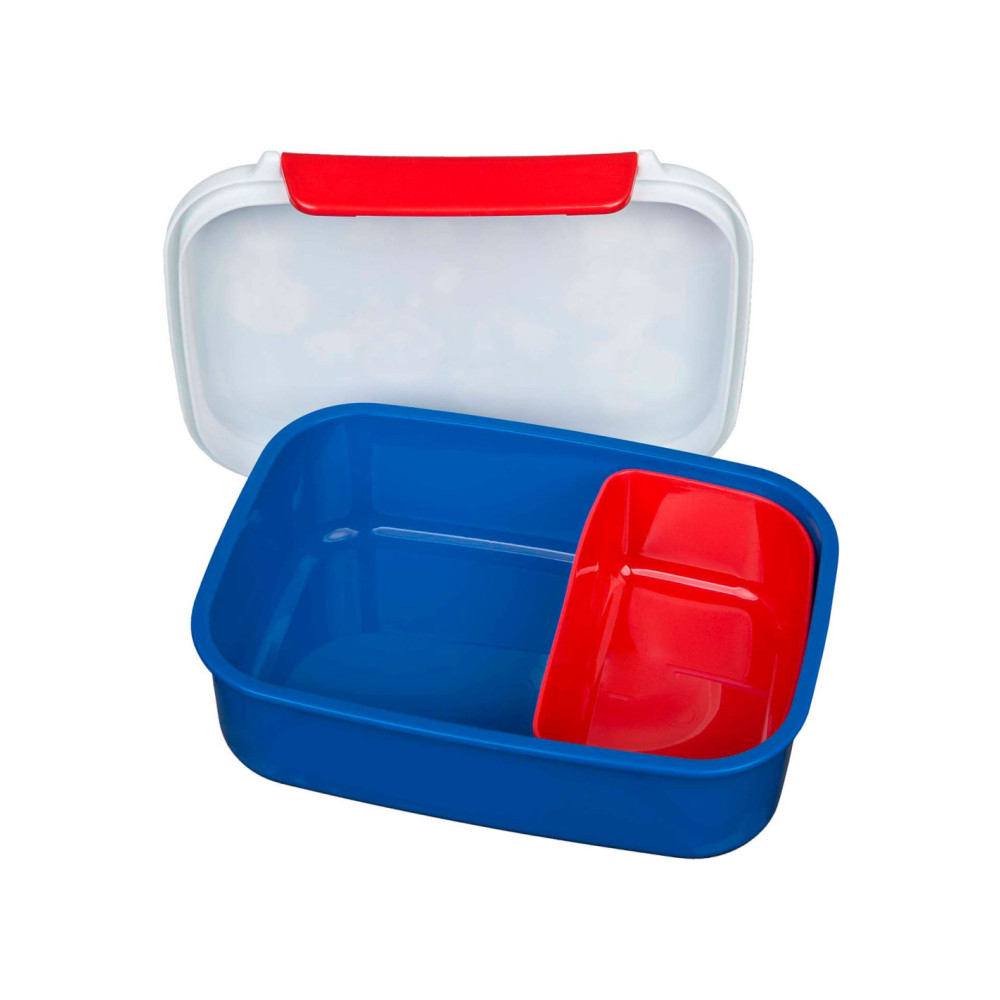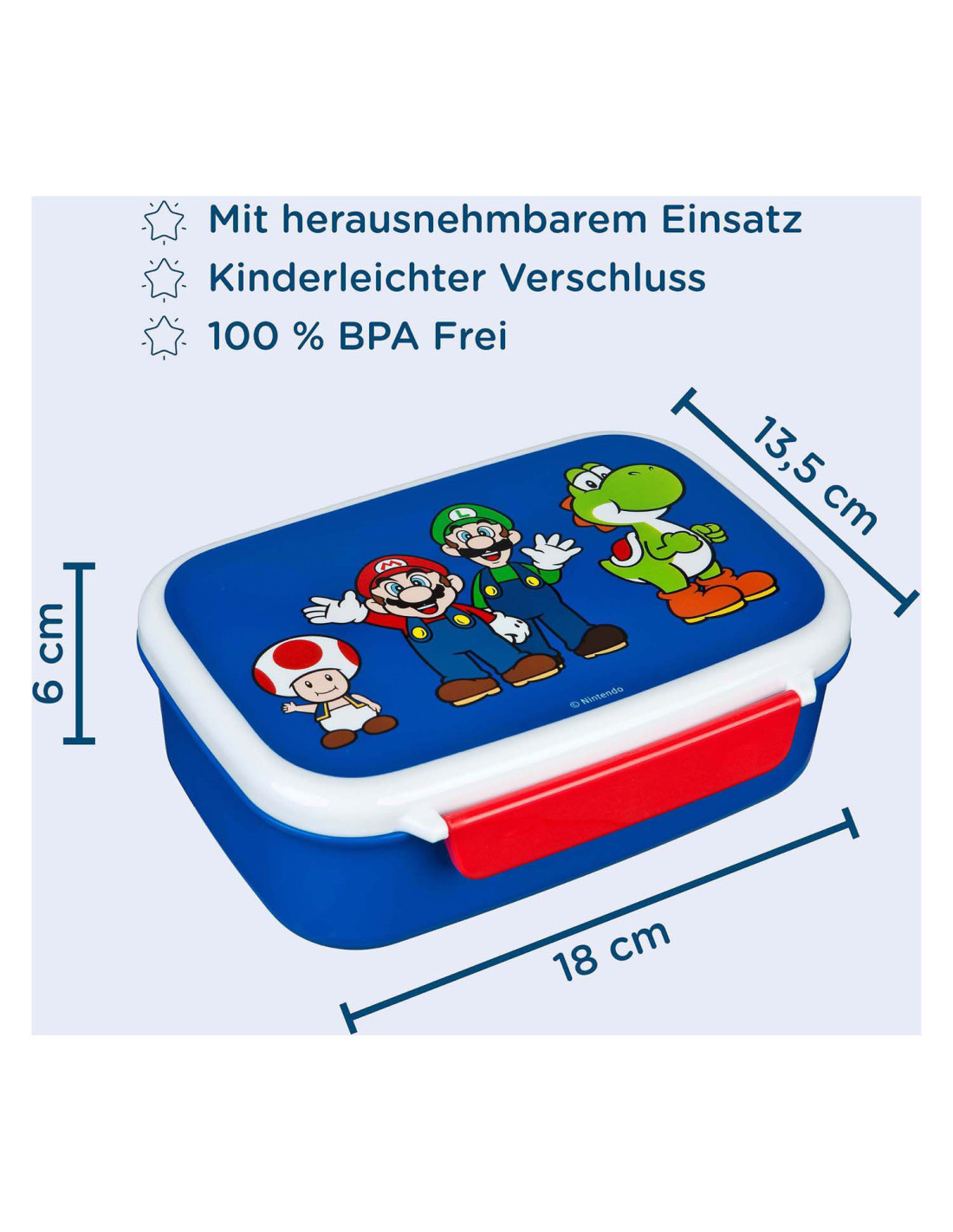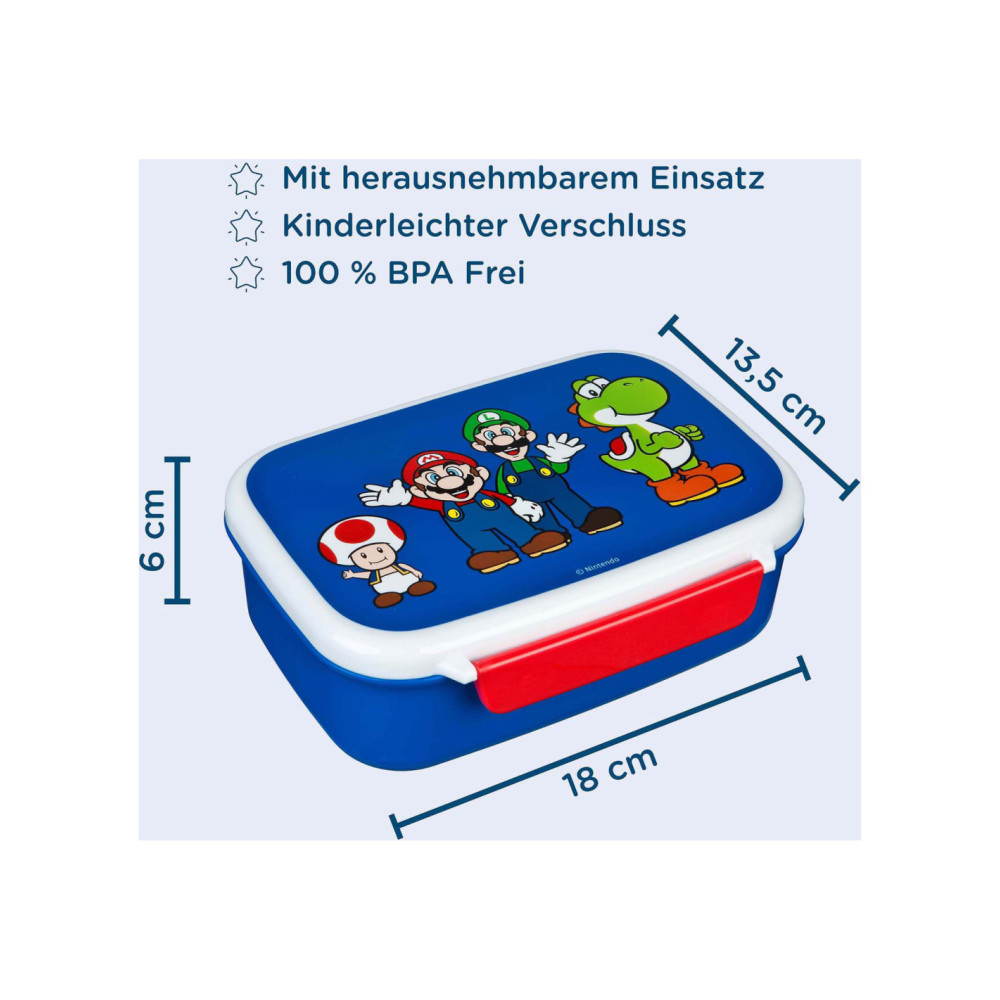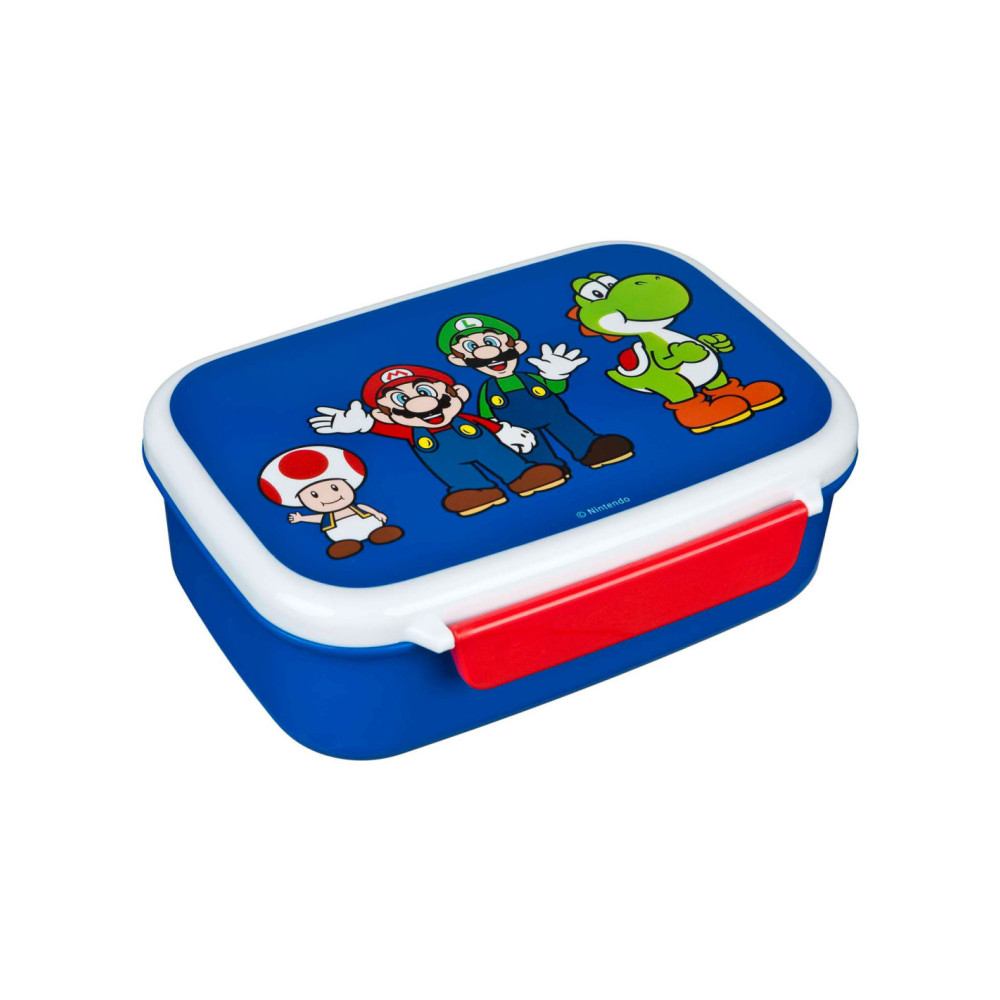 Super Mario lunch box/broodtrommel. De broodtrommel heeft een afmeting van 19,5 ‚Ääx ‚Ää14,5 ‚Ääx ‚Ää7 ‚Ääcm.