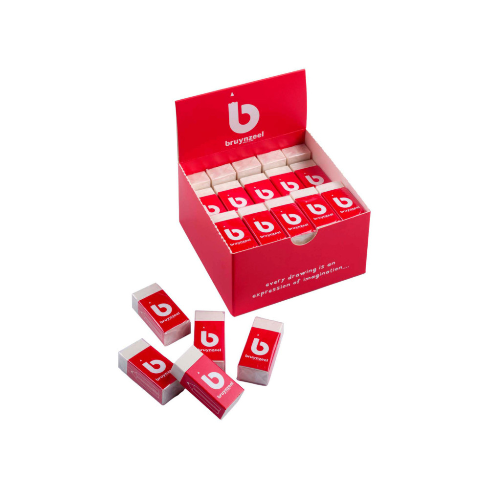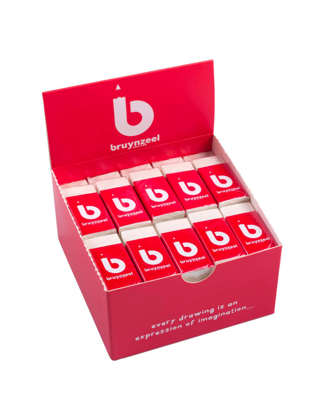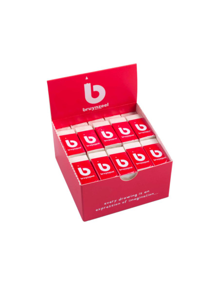 Medium kunststof gummen (42x18 mm), PVC- en latexvrij. Perfect voor het uitgummen van grafiet en houtskool. Verpakt in een toonbankdisplay met 45 stuks.