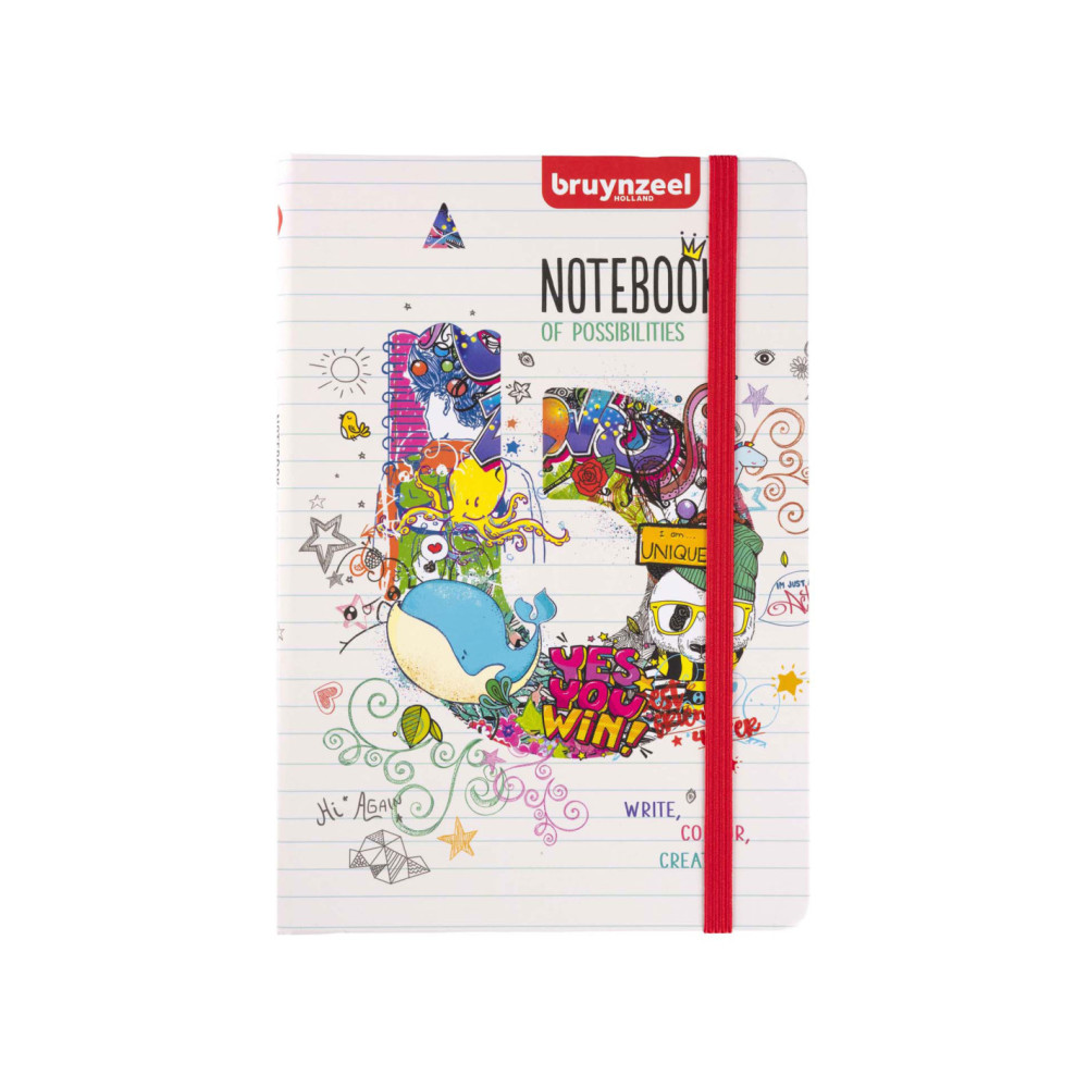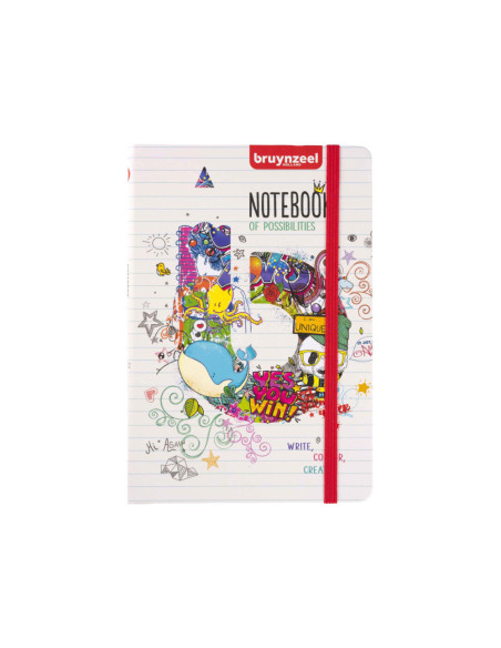 Gelinieerd notitieboek met 160 pagina's van 80 g/m², voorzien van harde kaft met ronde hoeken, zuurvrij papier, bladwijzer (lint) en elastieken sluiting. Ideaal voor al je (school)notities. Perfect om te gebruiken met Bruynzeel producten.