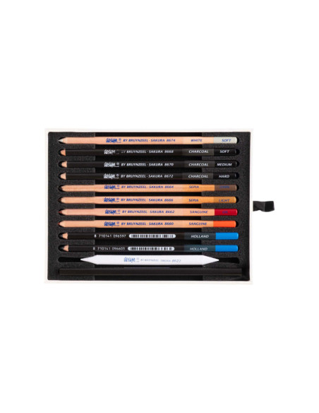 - Wit (zacht) - Potlood met een witte stift op krijtbasis voor het aanbrengen van contrasten en het afzwakken van kleuren.