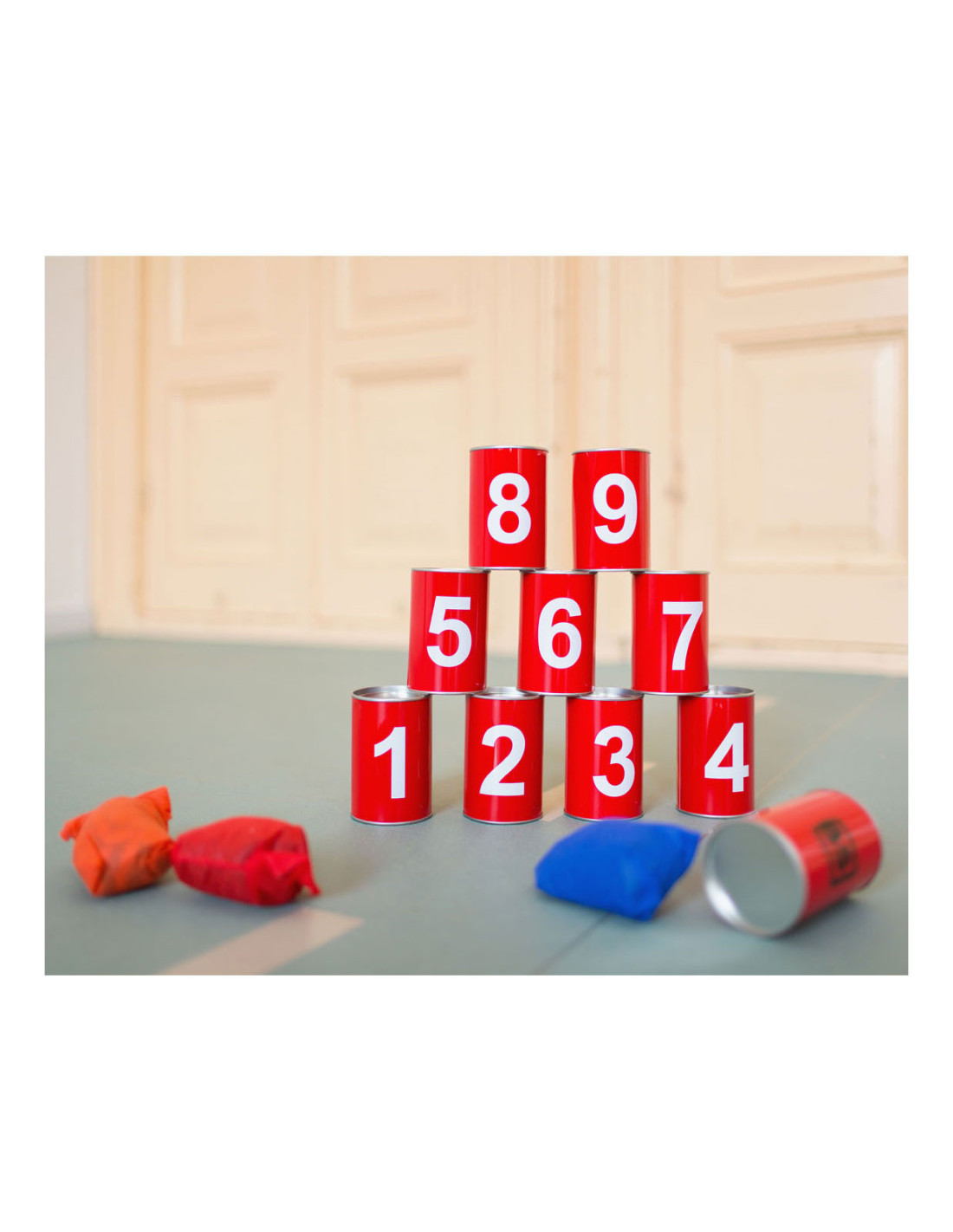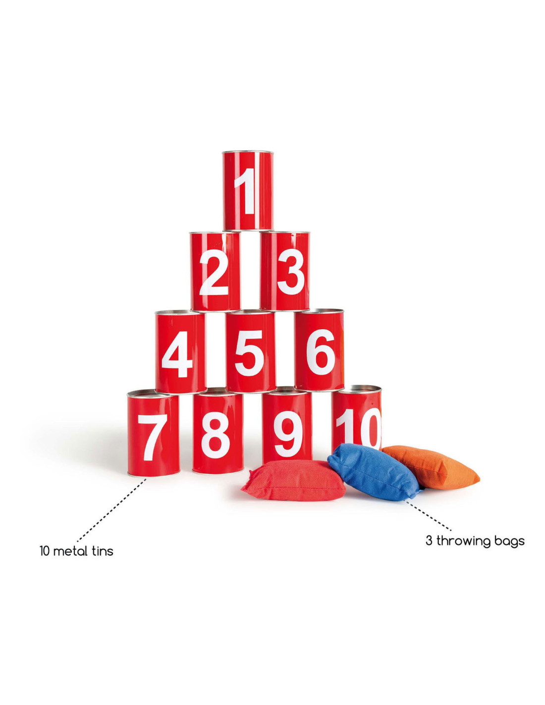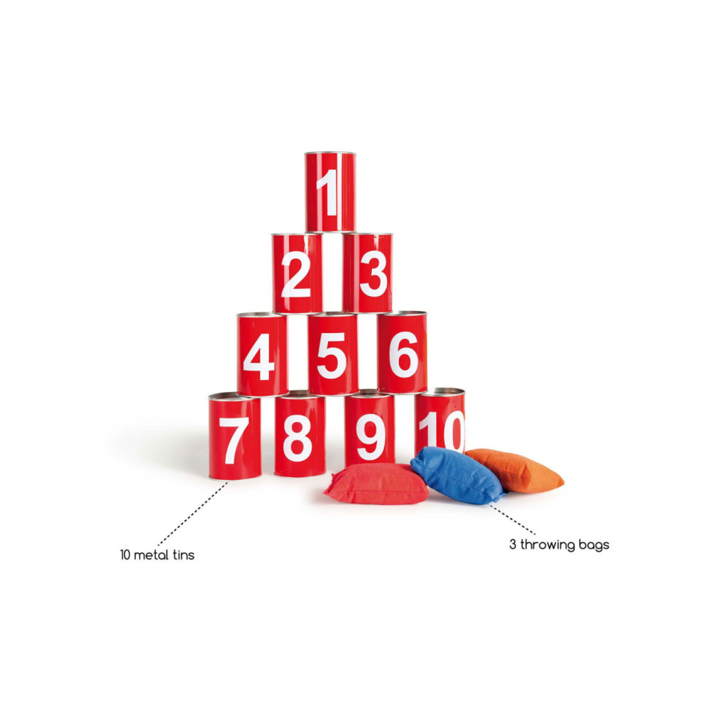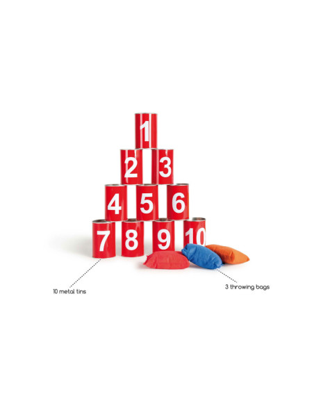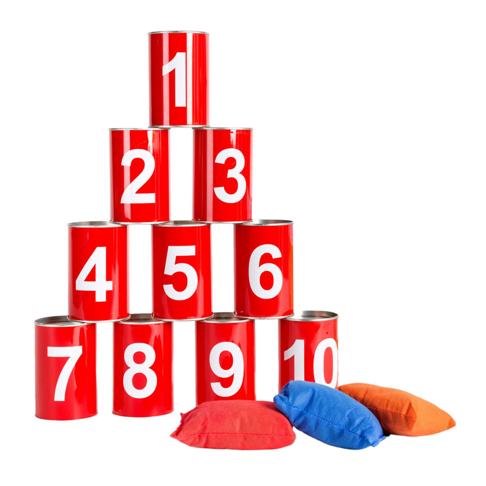 Blikkengooien is geweldig om te doen. Scoor door de blikken te raken met het zakje. Kun jij ze allemaal tegelijk raken?