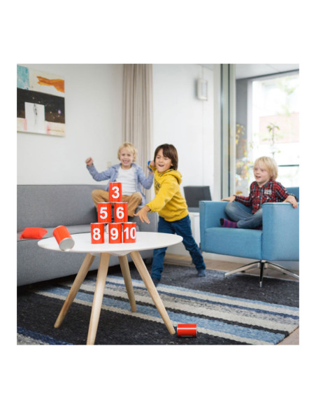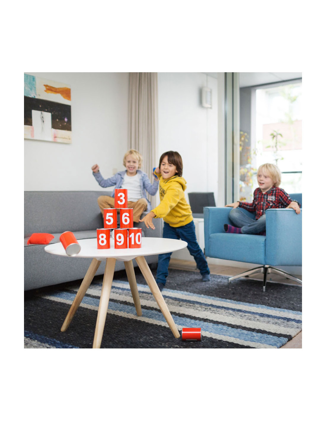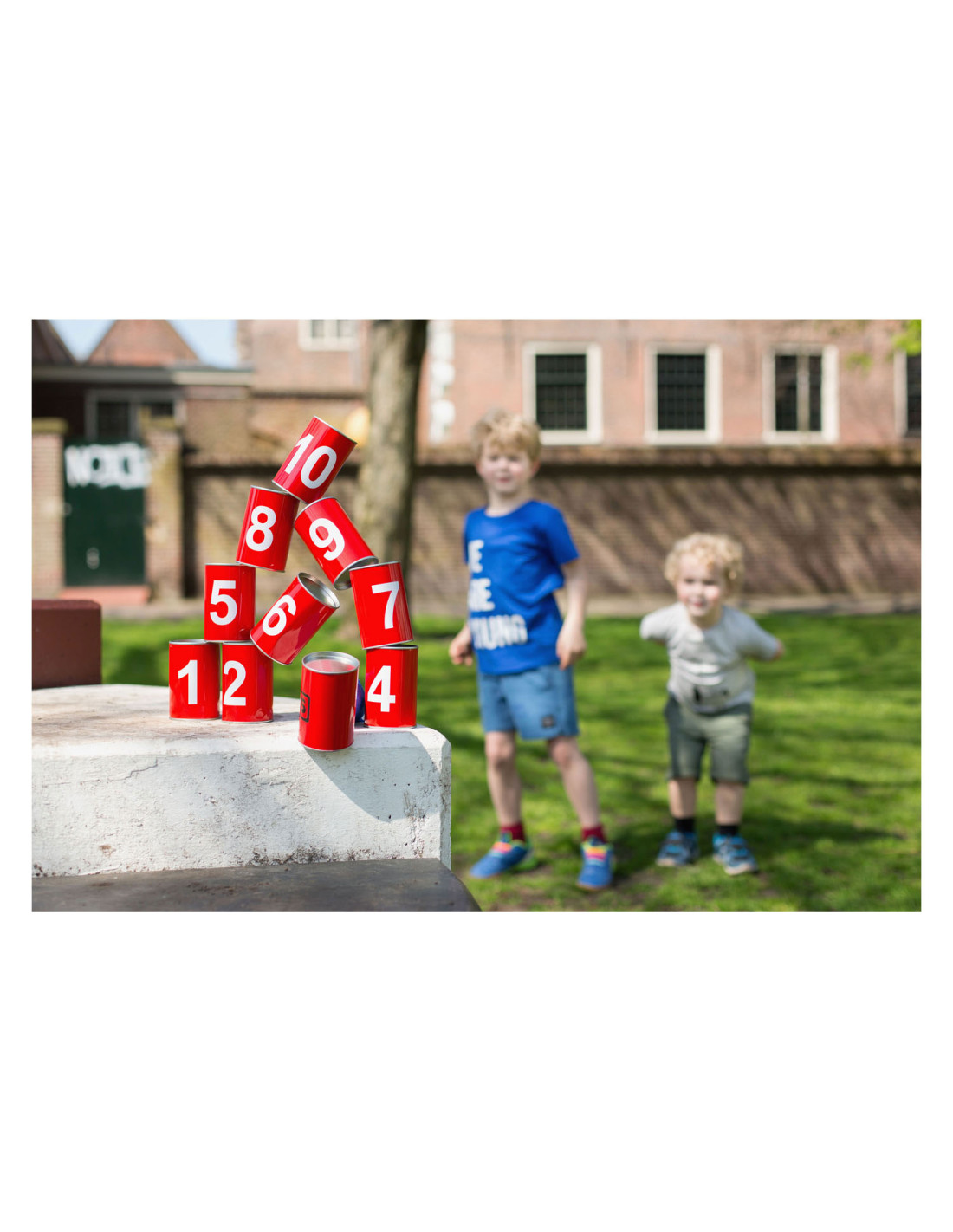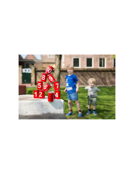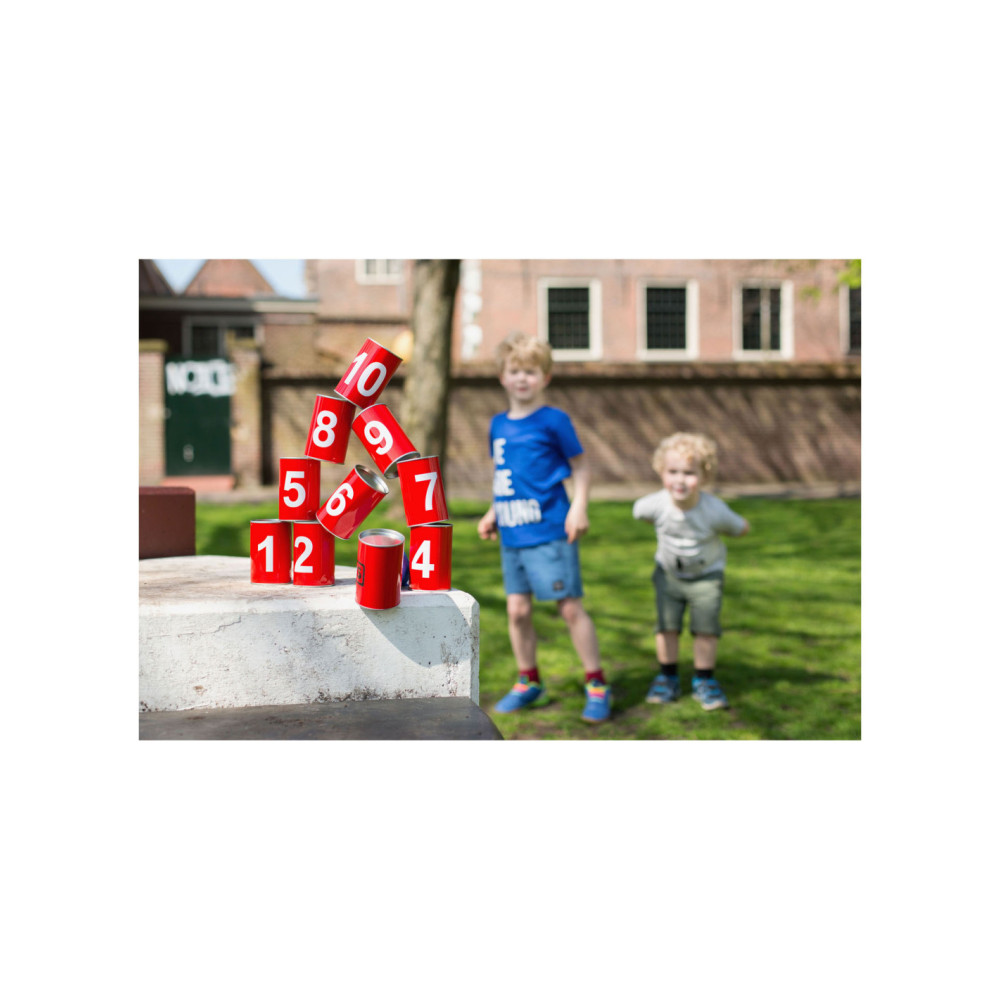 Blikkengooien is geweldig om te doen. Scoor door de blikken te raken met het zakje. Kun jij ze allemaal tegelijk raken?