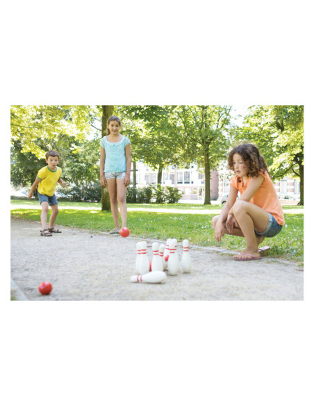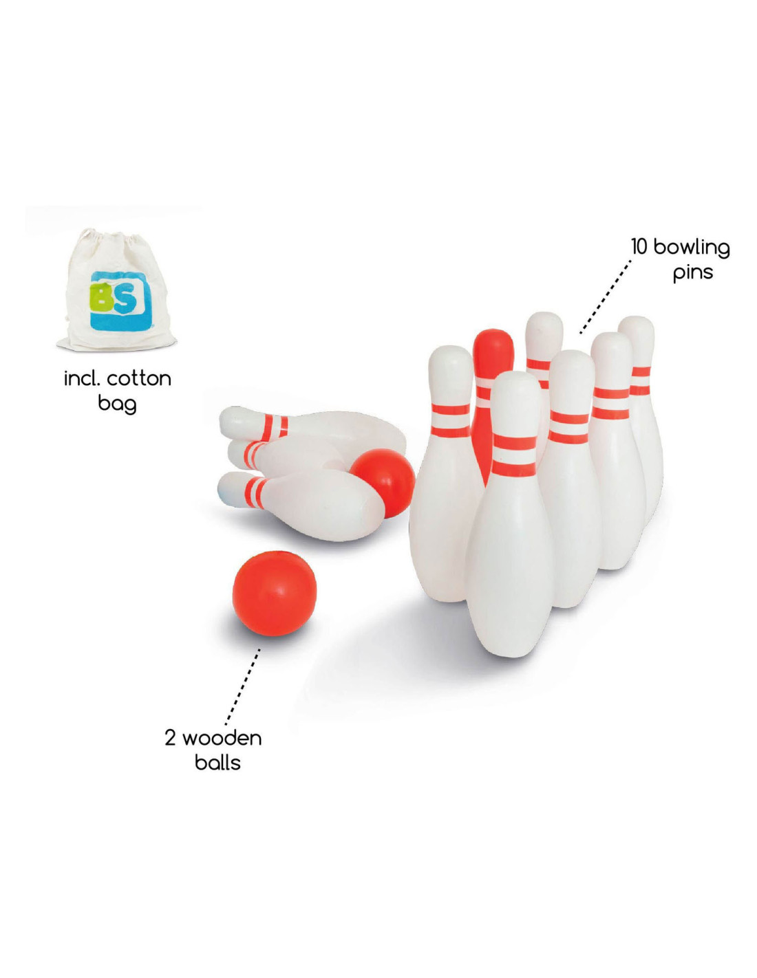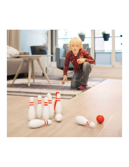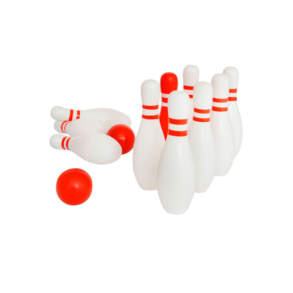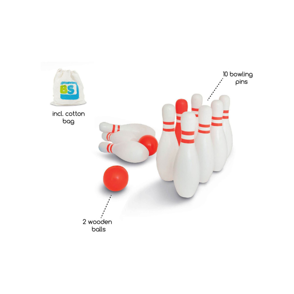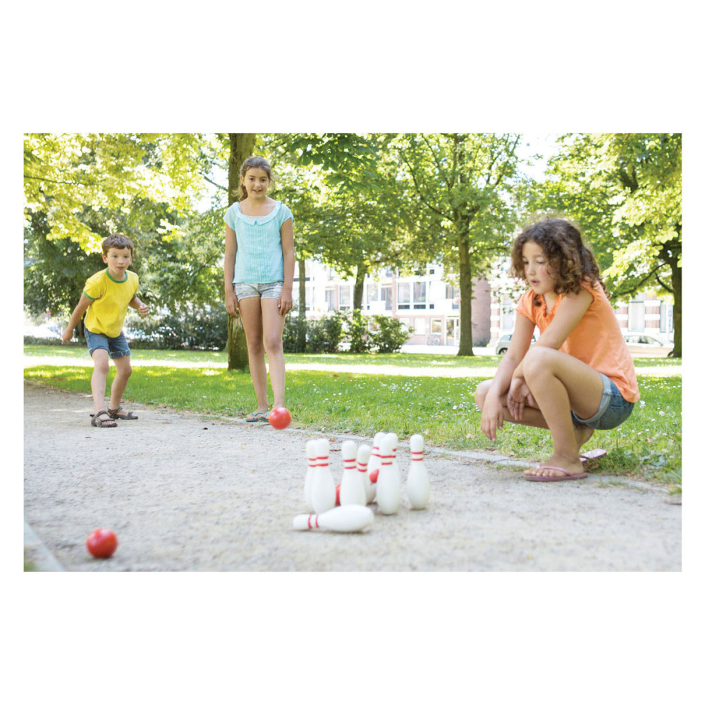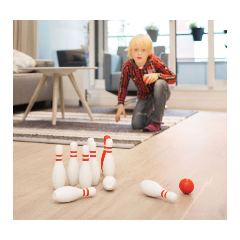 Leuk houten bowlingspel. Kun jij een strike gooien?