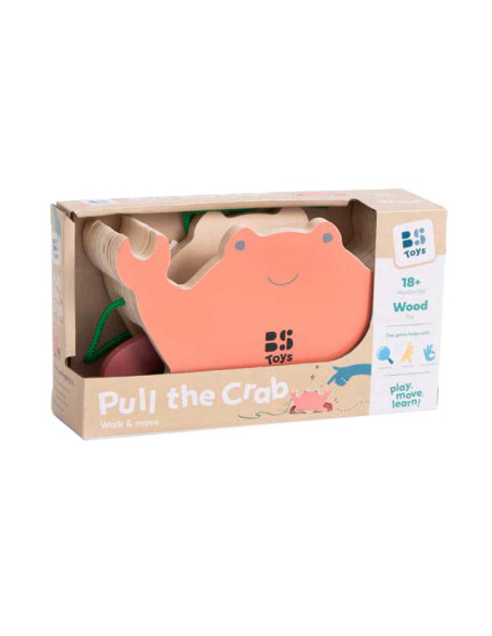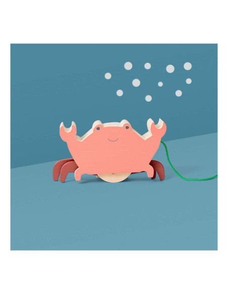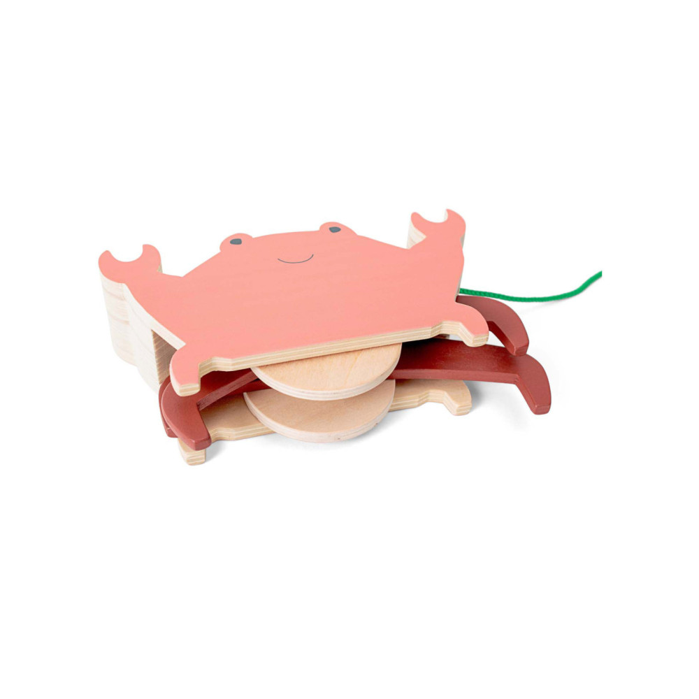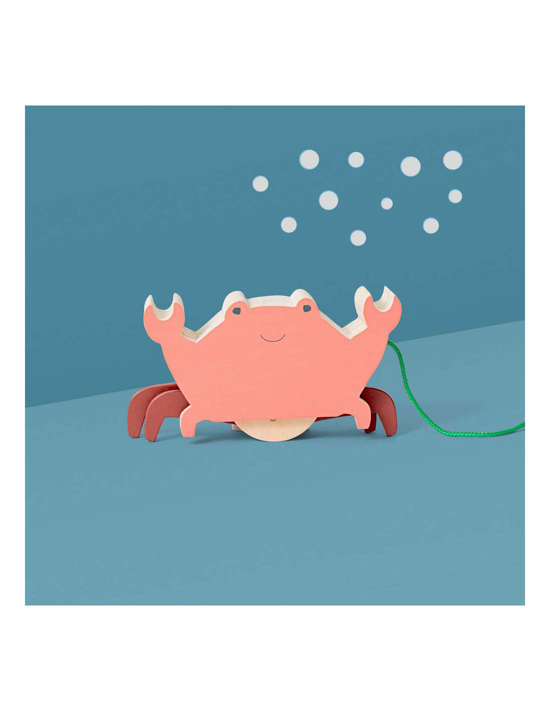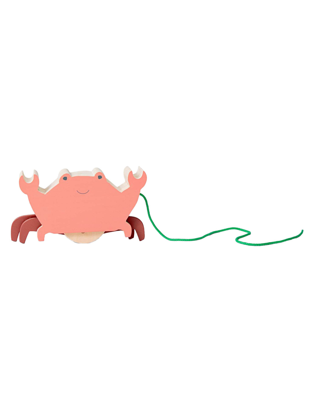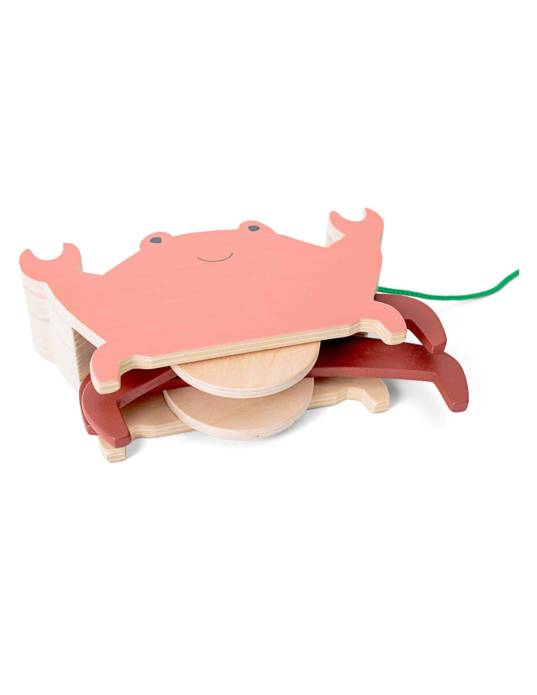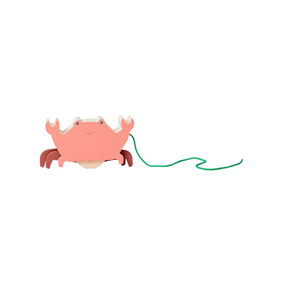 Krab met trekkoord. De krab is gemaakt van hout en geschikt vanaf 18 maanden.
