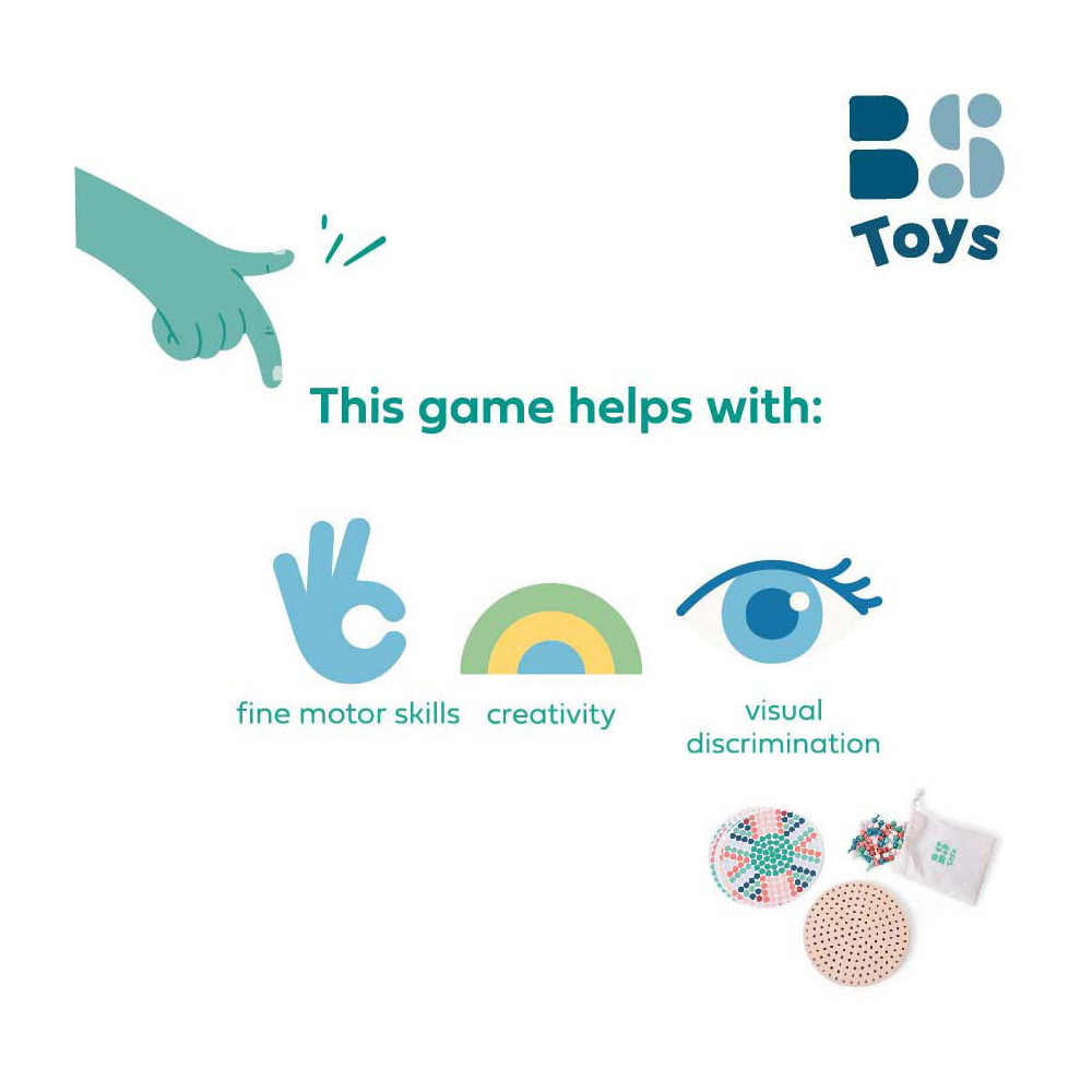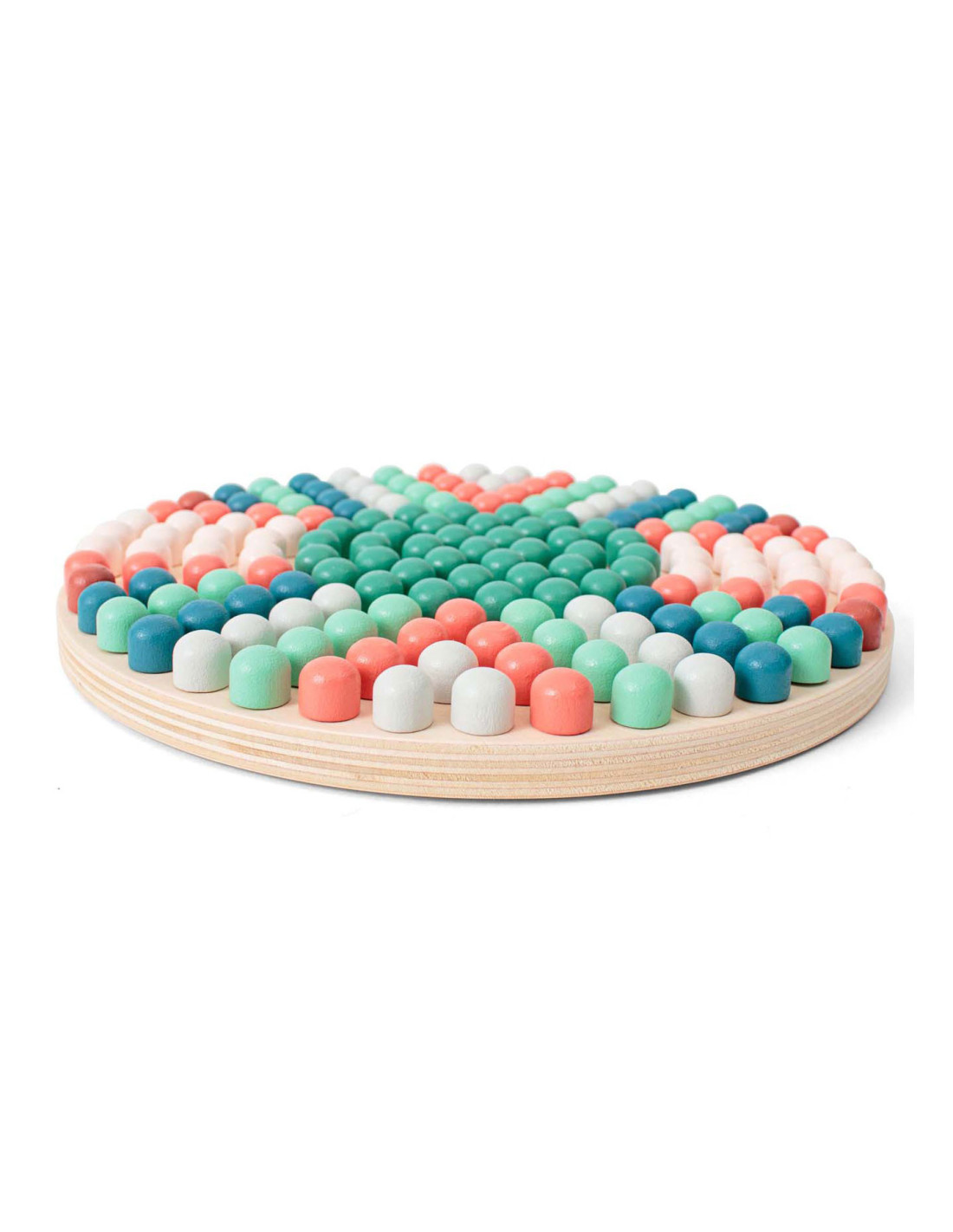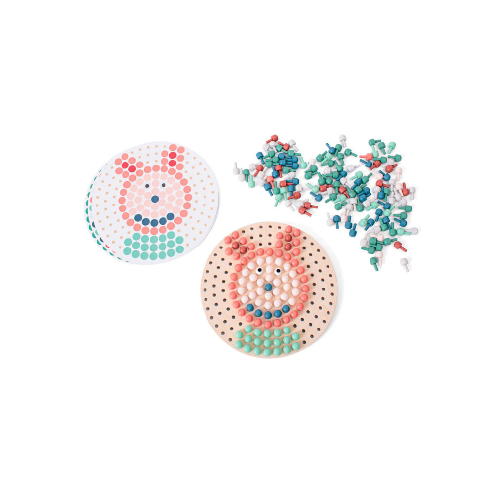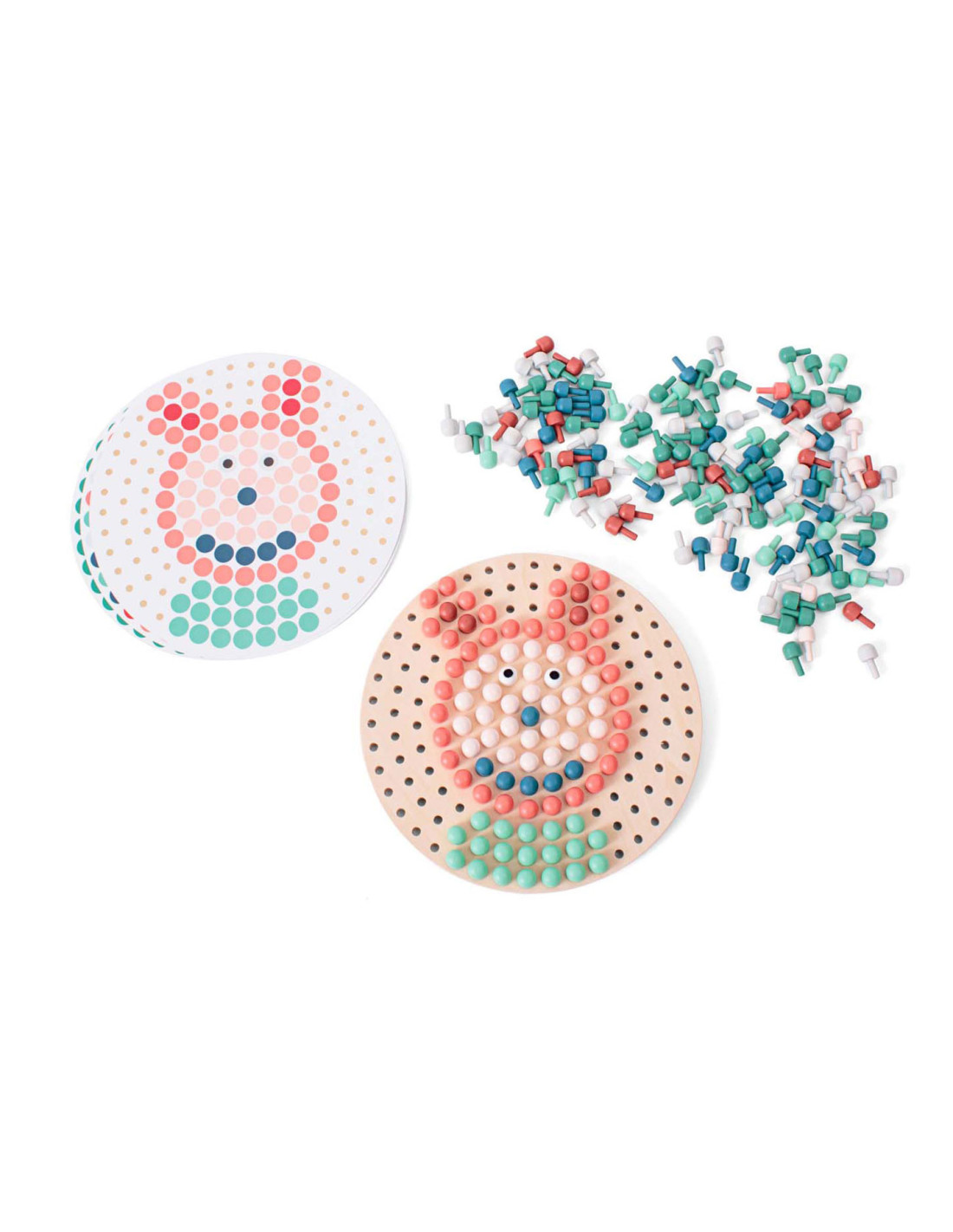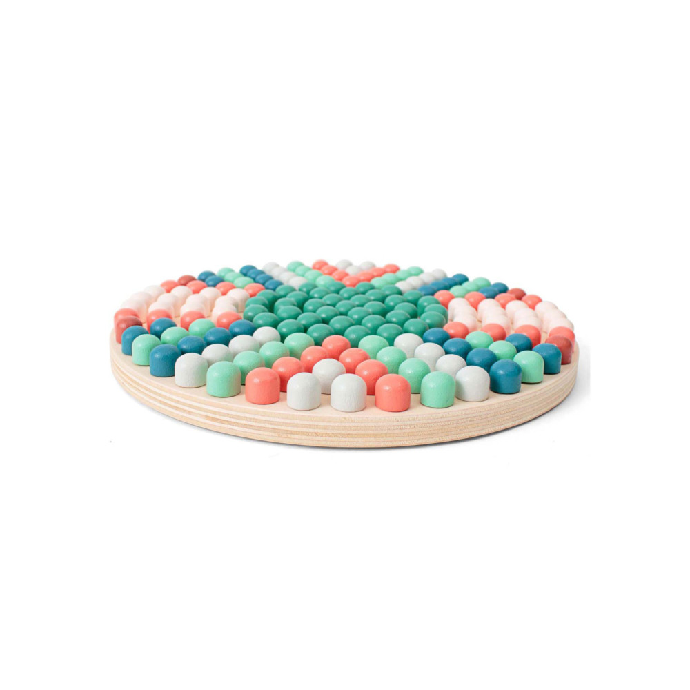 Ontdek eindeloos speelplezier met dit kleurrijke houten mozaïek insteekspel! Met maar liefst 217 houten pinnen maak je de mooiste creaties. Volg de voorbeeldkaarten om patronen na te maken, of verzin je eigen ontwerpen. Dit volledig houten spel komt met een handig zakje, zodat je het overal mee naartoe kunt nemen. Laat je fantasie de vrije loop en zie je kunstwerk pin voor pin tot leven komen!