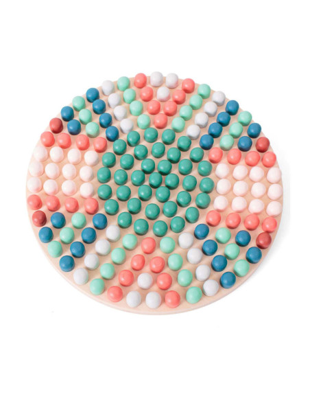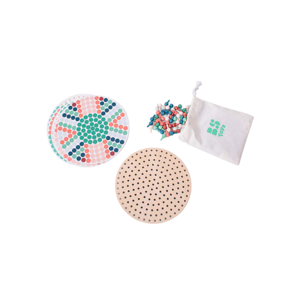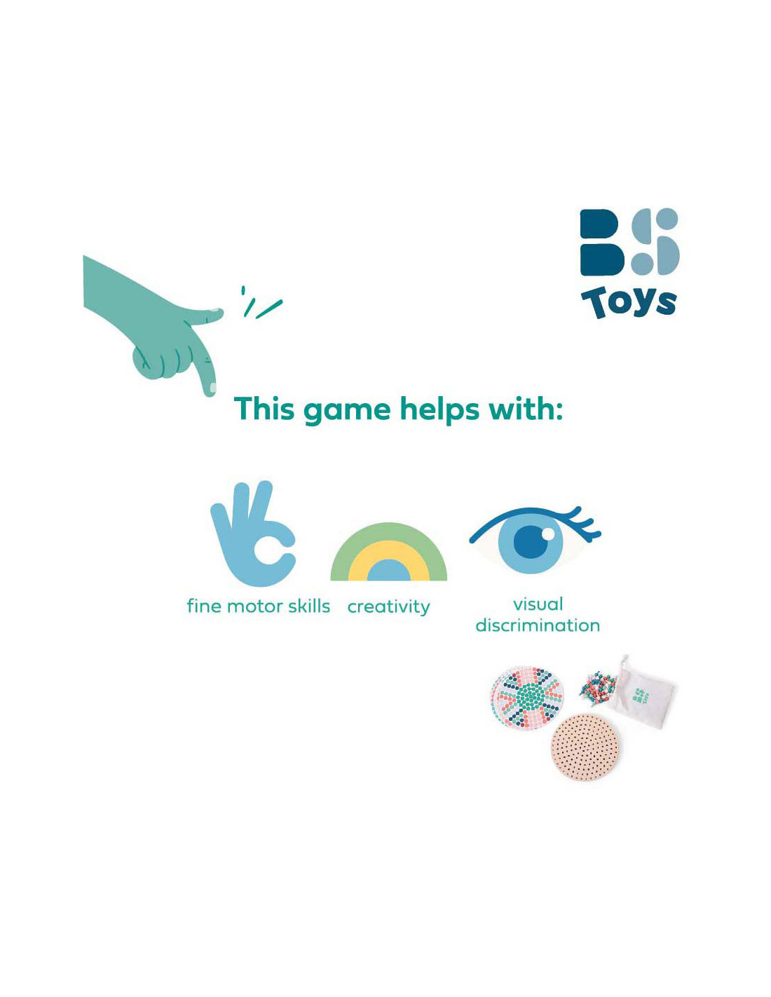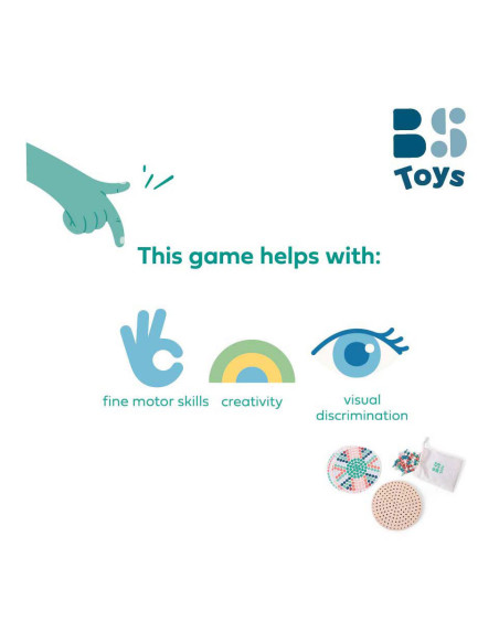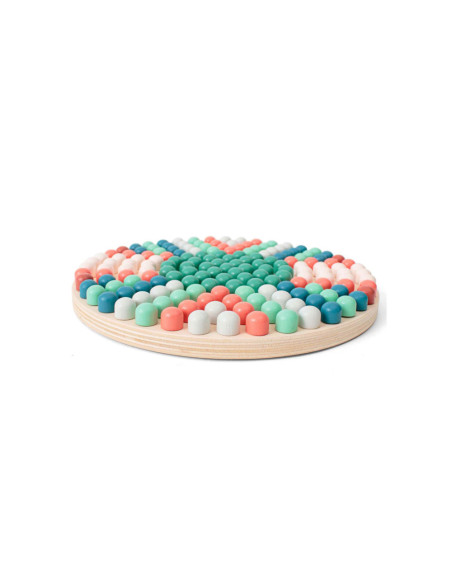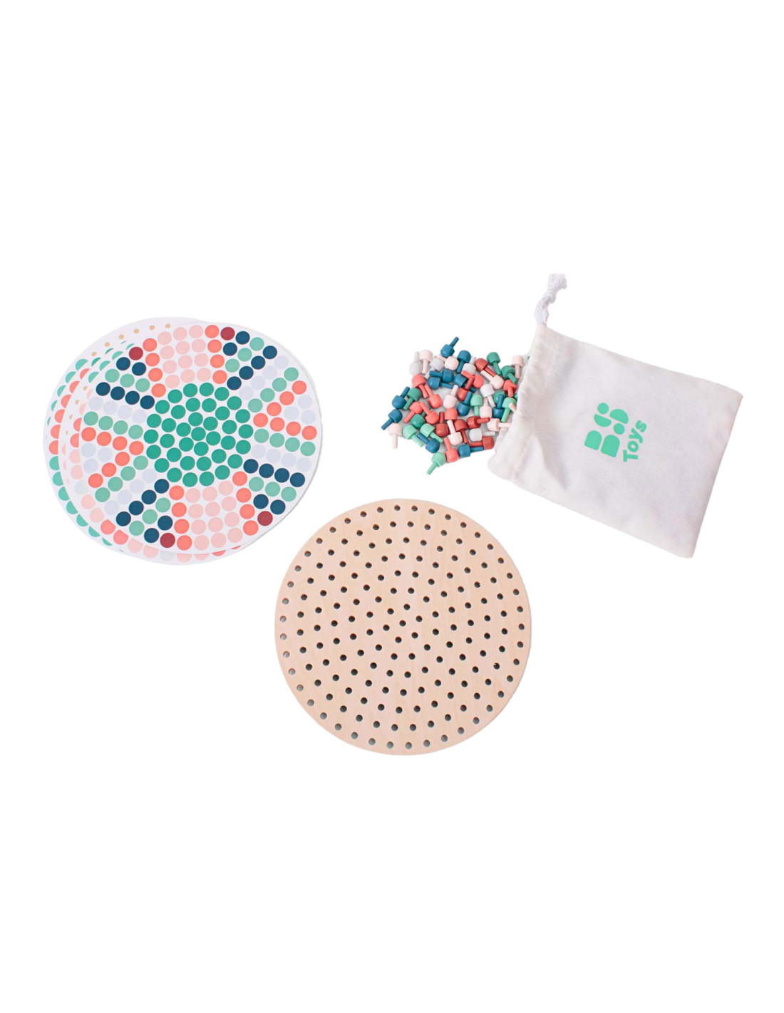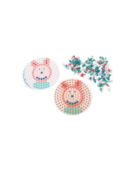 Ontdek eindeloos speelplezier met dit kleurrijke houten mozaïek insteekspel! Met maar liefst 217 houten pinnen maak je de mooiste creaties. Volg de voorbeeldkaarten om patronen na te maken, of verzin je eigen ontwerpen. Dit volledig houten spel komt met een handig zakje, zodat je het overal mee naartoe kunt nemen. Laat je fantasie de vrije loop en zie je kunstwerk pin voor pin tot leven komen!