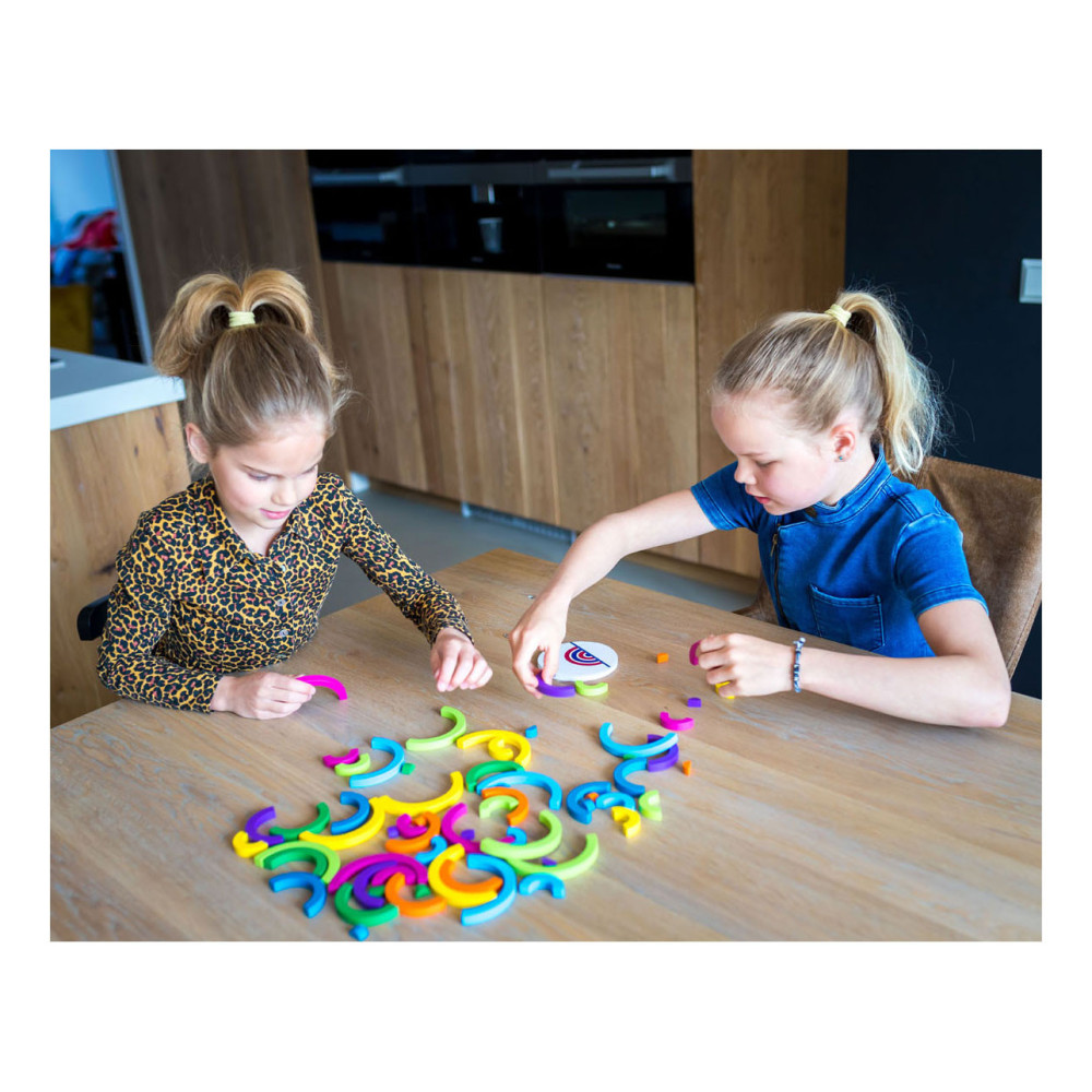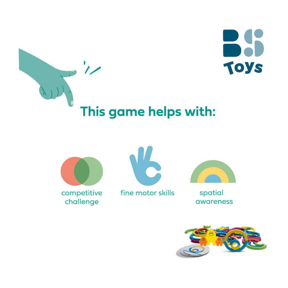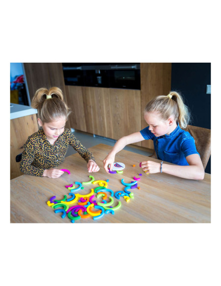 Elke speler krijgt een set kleurrijke strikken en maakt de afbeelding na die je op de kaart voor je ziet. Als jij als eerste klaar bent, win je de kaart! Wie heeft de beste combinatie van ruimtelijk inzicht, coördinatie en snelheid?