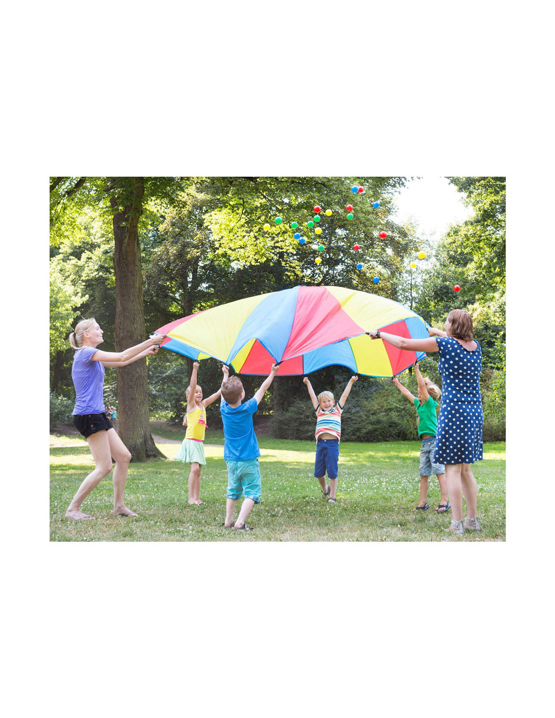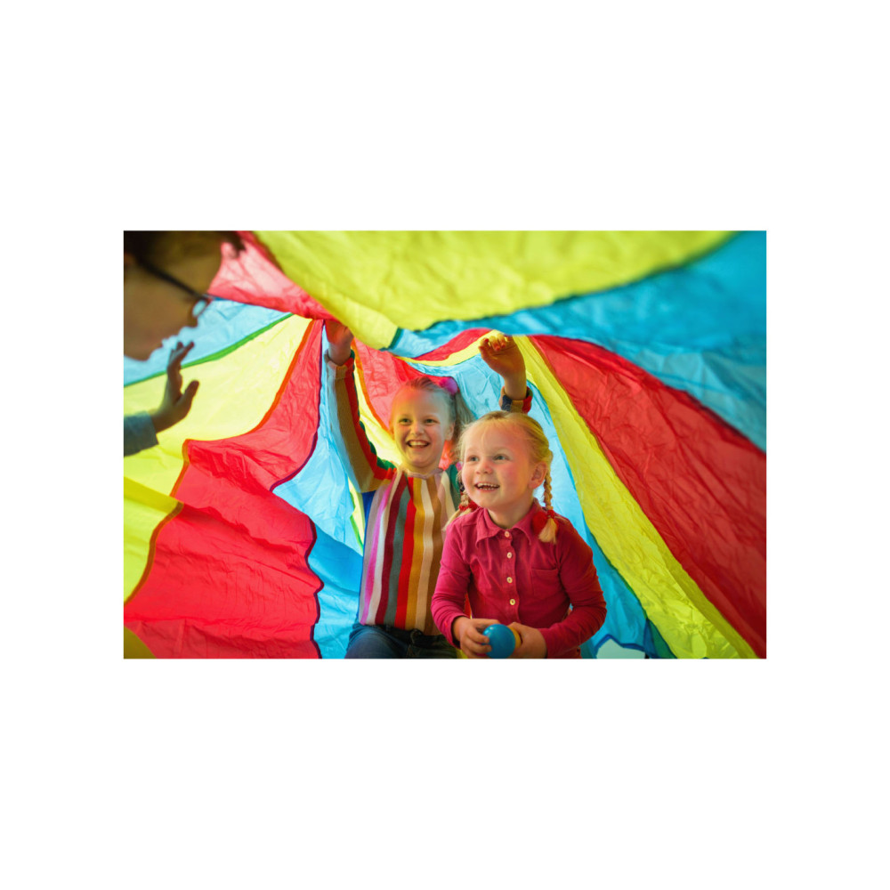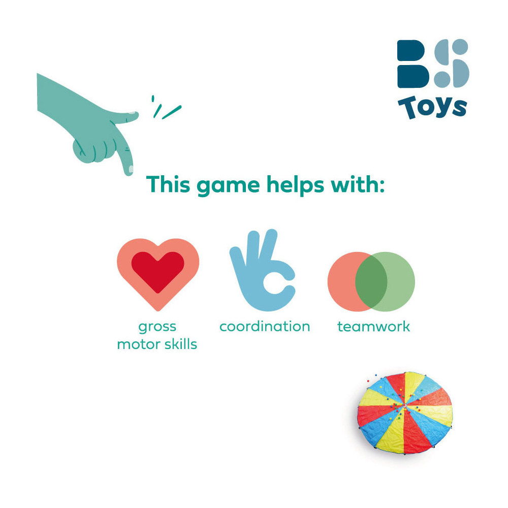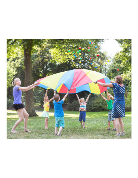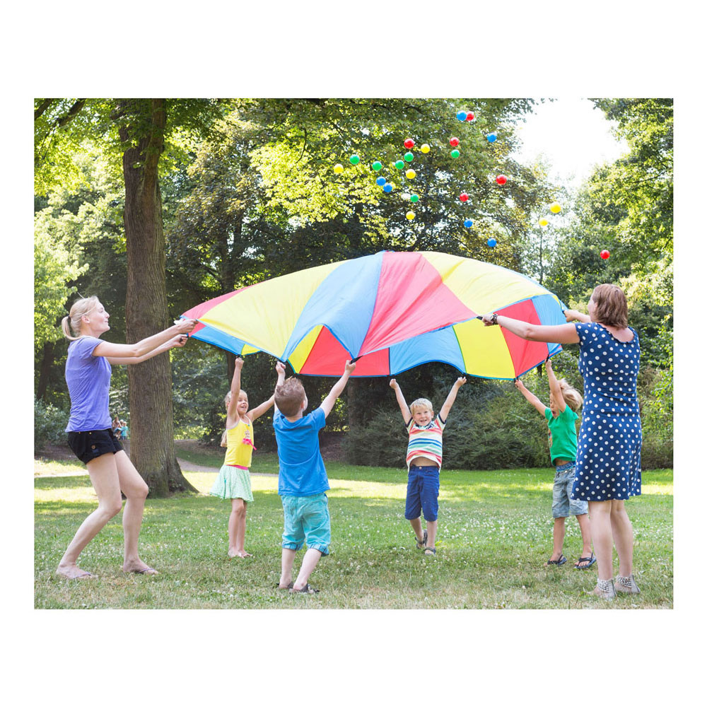 In dit spel is het belangrijk dat je goed samenwerkt met je vrienden! Laat de stuiterballen los in de parachute, maar zorg ervoor dat ze er niet uitvallen. Een vrolijk en leerzaam spel dat voor veel speelplezier zorgt!