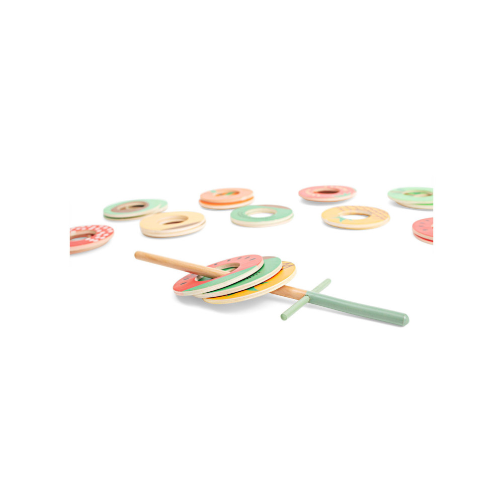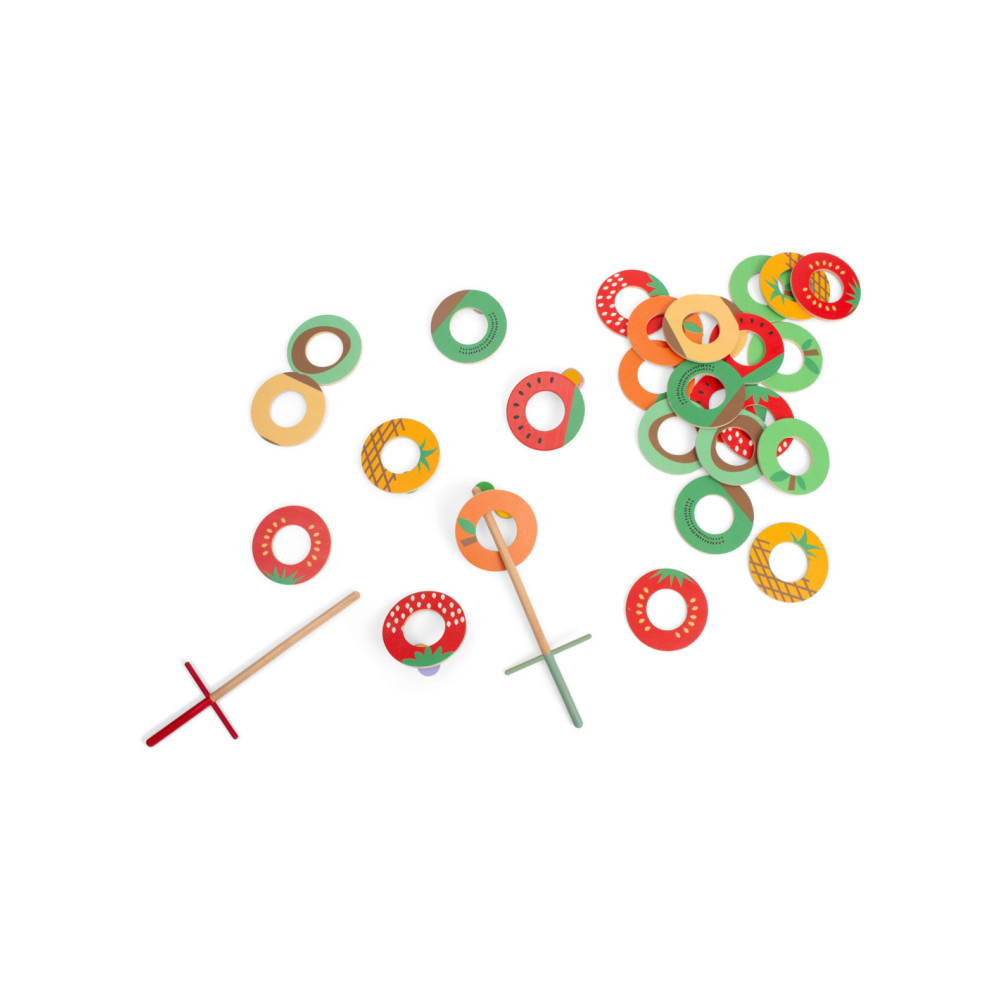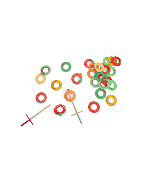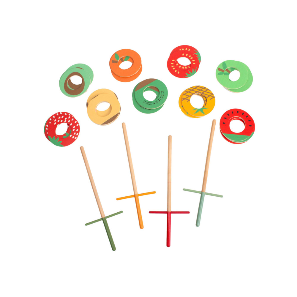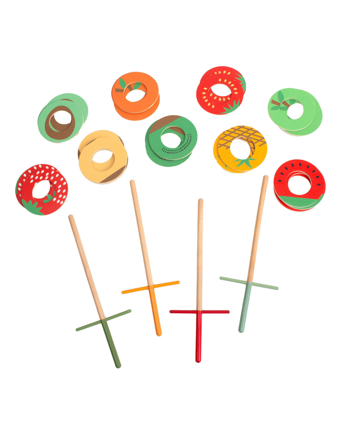 • Inhoud: 27 fruitfrisbees en 4 vangstokjes