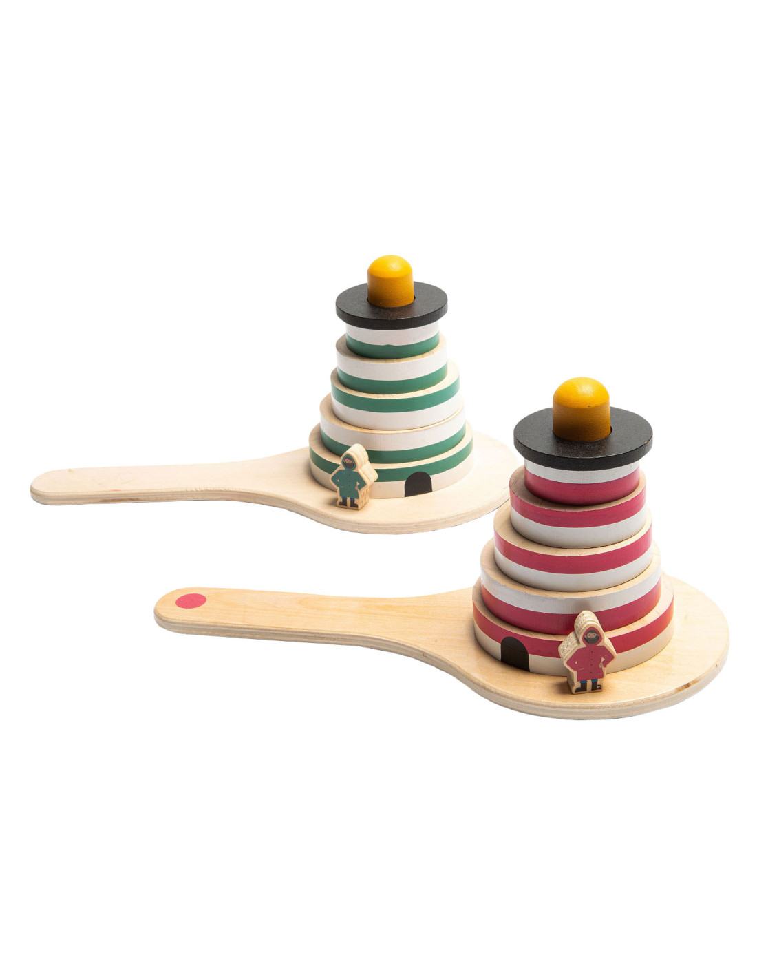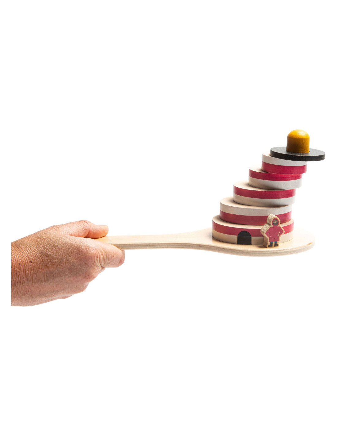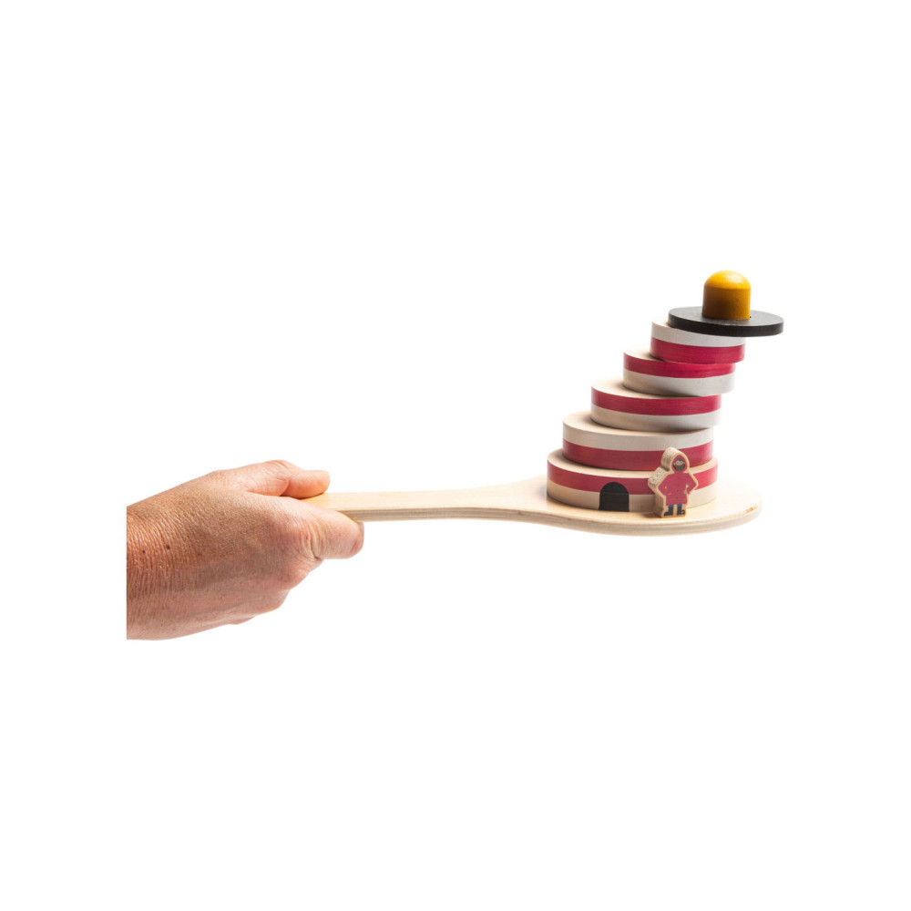 Help! De vuurtoren is omgevallen en de onderdelen liggen overal verspreid. Kies per speler (of team) je kleur en help jouw vuurtorenwachter door naar onderdelen te racen en ze te verzamelen. Kun jij de vuurtoren compleet maken en opbouwen zonder hem weer om te laten vallen? Een zenuwslopend racespel waarbij je ongemerkt ook nog eens je balans en hand-oogcoördinatie traint!