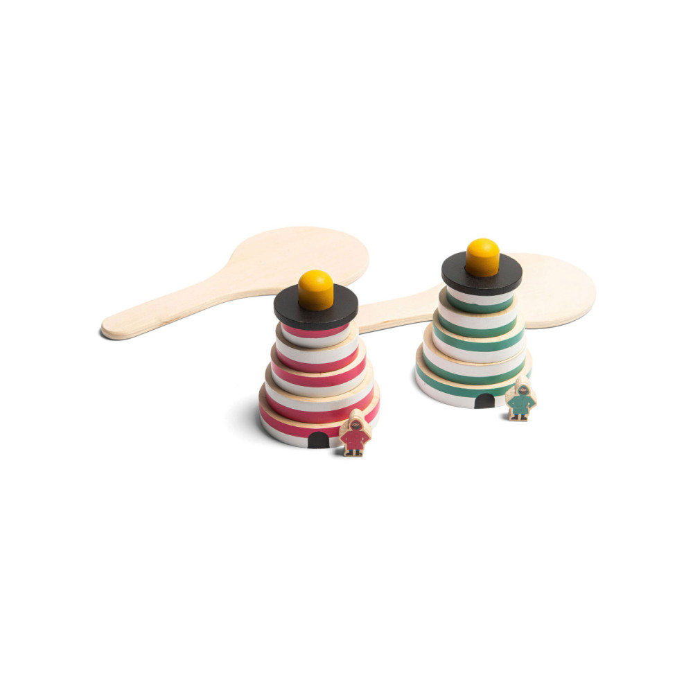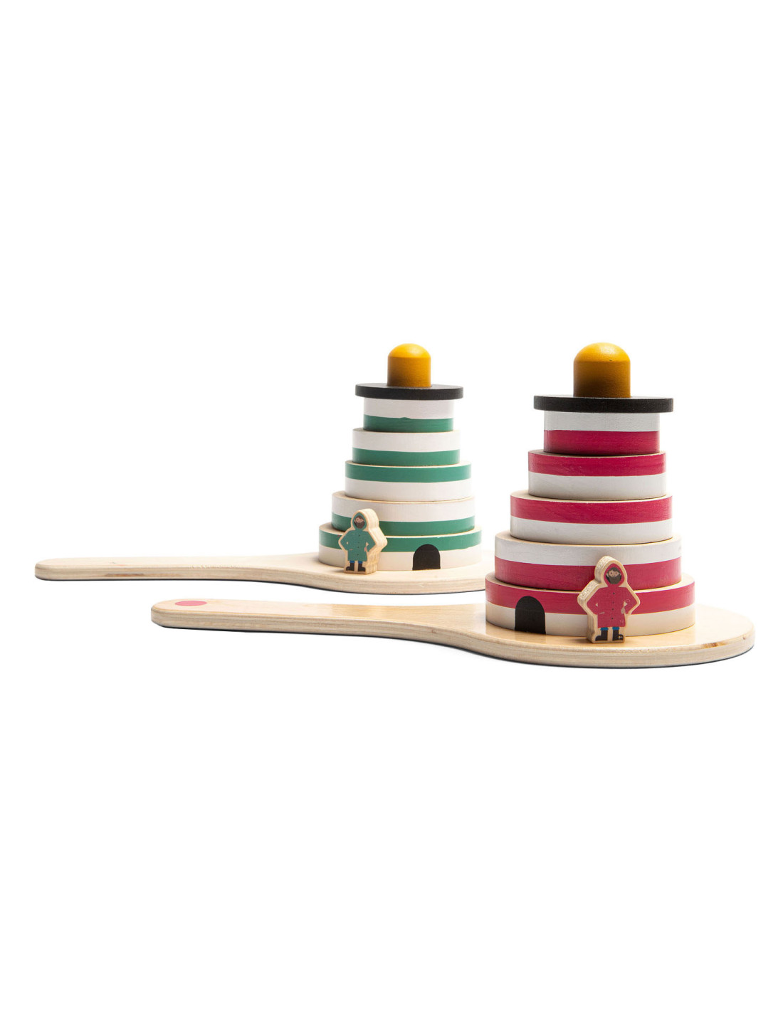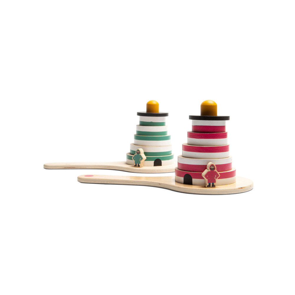Help! De vuurtoren is omgevallen en de onderdelen liggen overal verspreid. Kies per speler (of team) je kleur en help jouw vuurtorenwachter door naar onderdelen te racen en ze te verzamelen. Kun jij de vuurtoren compleet maken en opbouwen zonder hem weer om te laten vallen? Een zenuwslopend racespel waarbij je ongemerkt ook nog eens je balans en hand-oogcoördinatie traint!