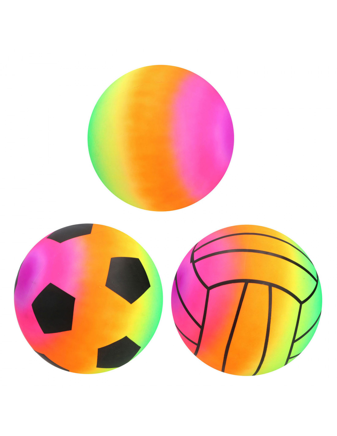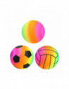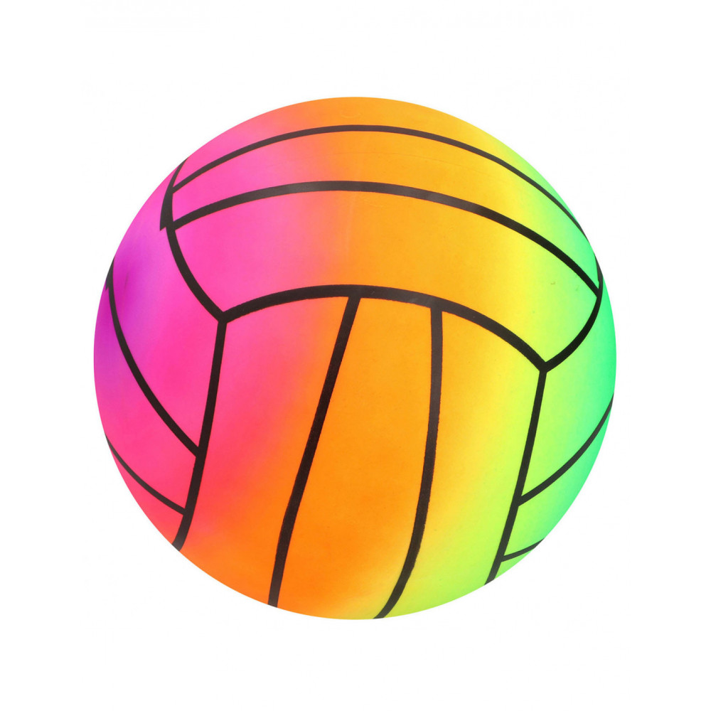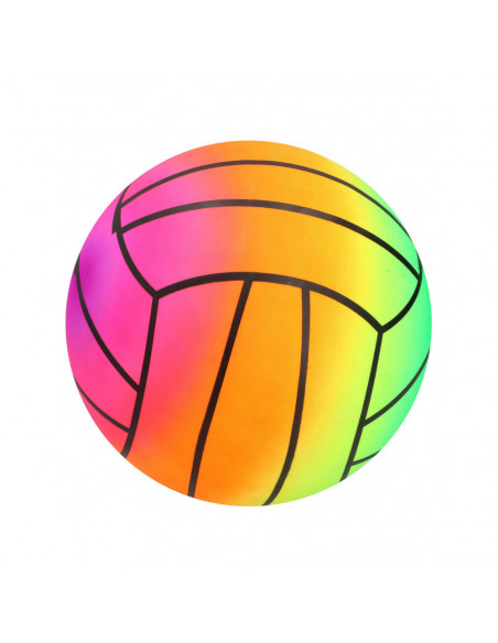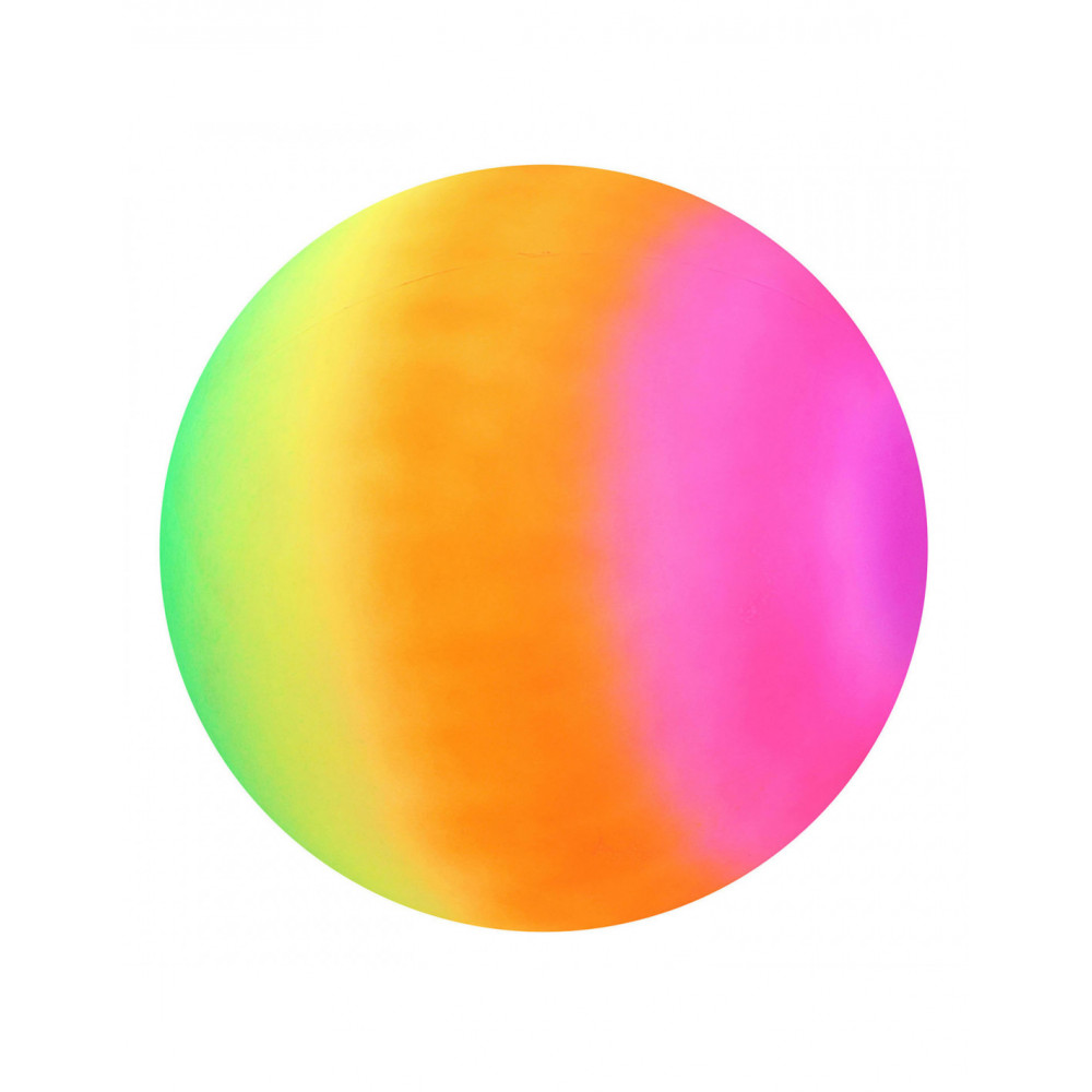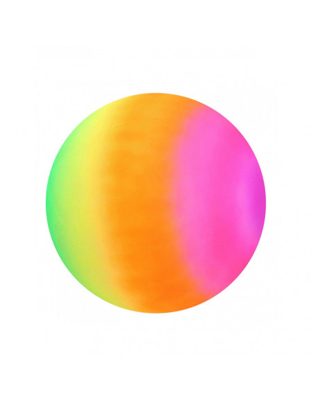 Kunststof bal met de kleuren van de regenboog. De bal heeft een doorsnede van 23 centimeter en wordt niet opgepompt geleverd. Opblazen kan met een voetbalpomp.
