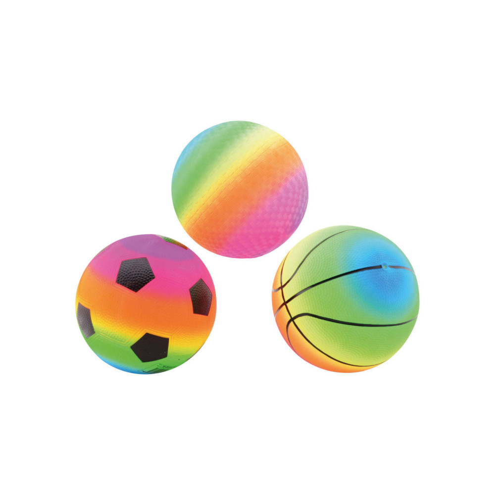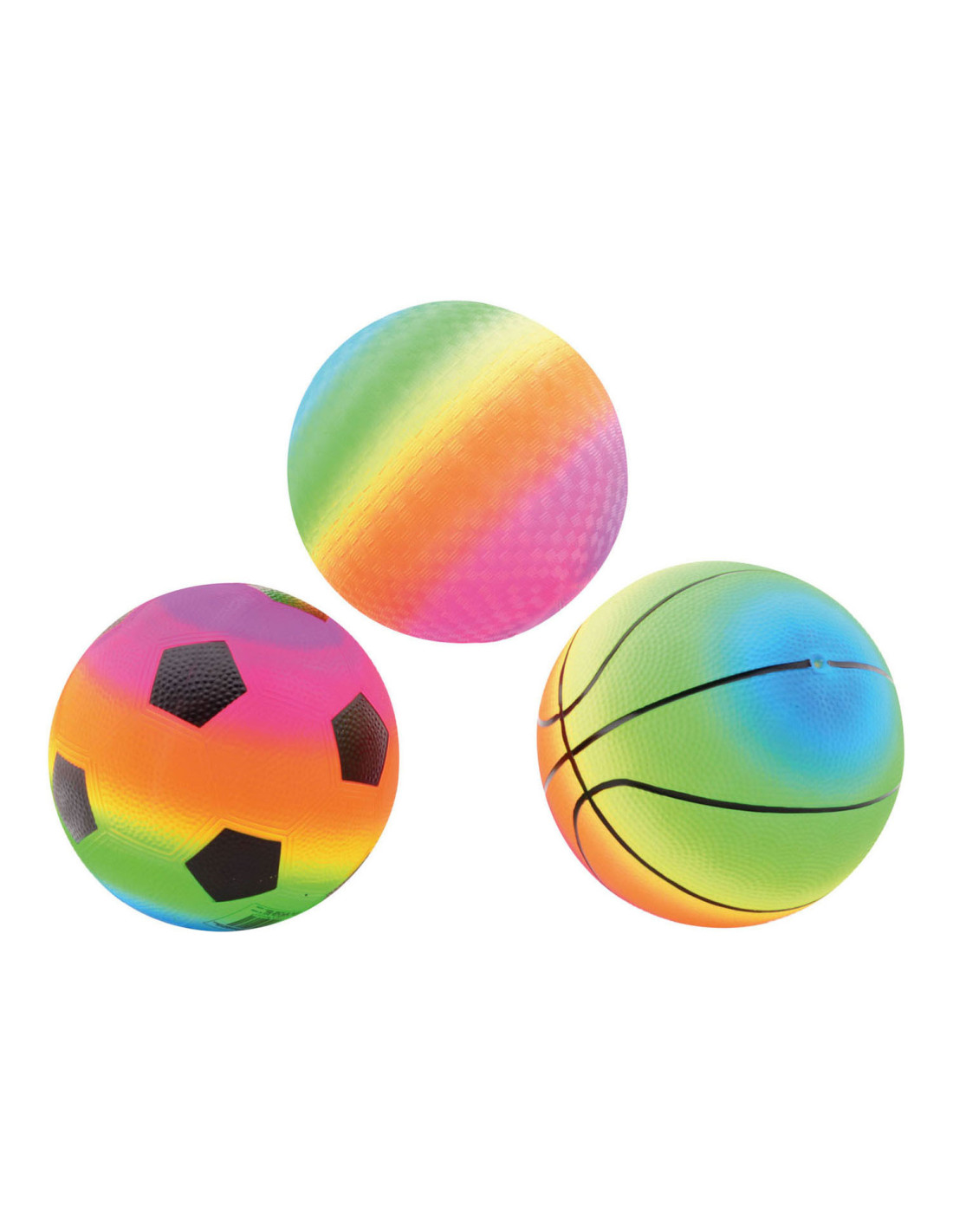Deze regenboog bal valt zeker op in de speeltuin of op het voetbalveld! De bal is voorzien van prachtige regenboogkleuren en heeft een doorsnede van 21 centimeter.