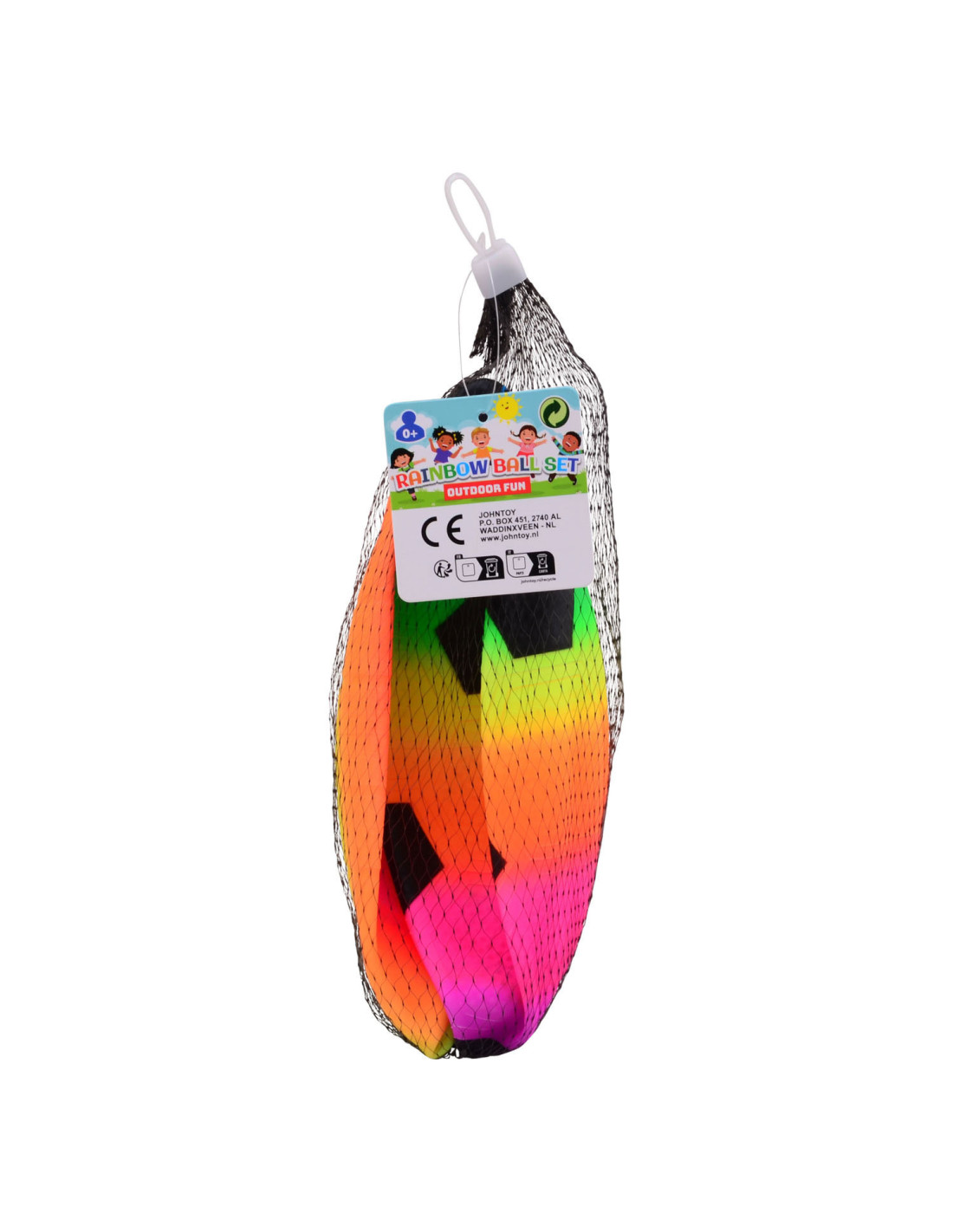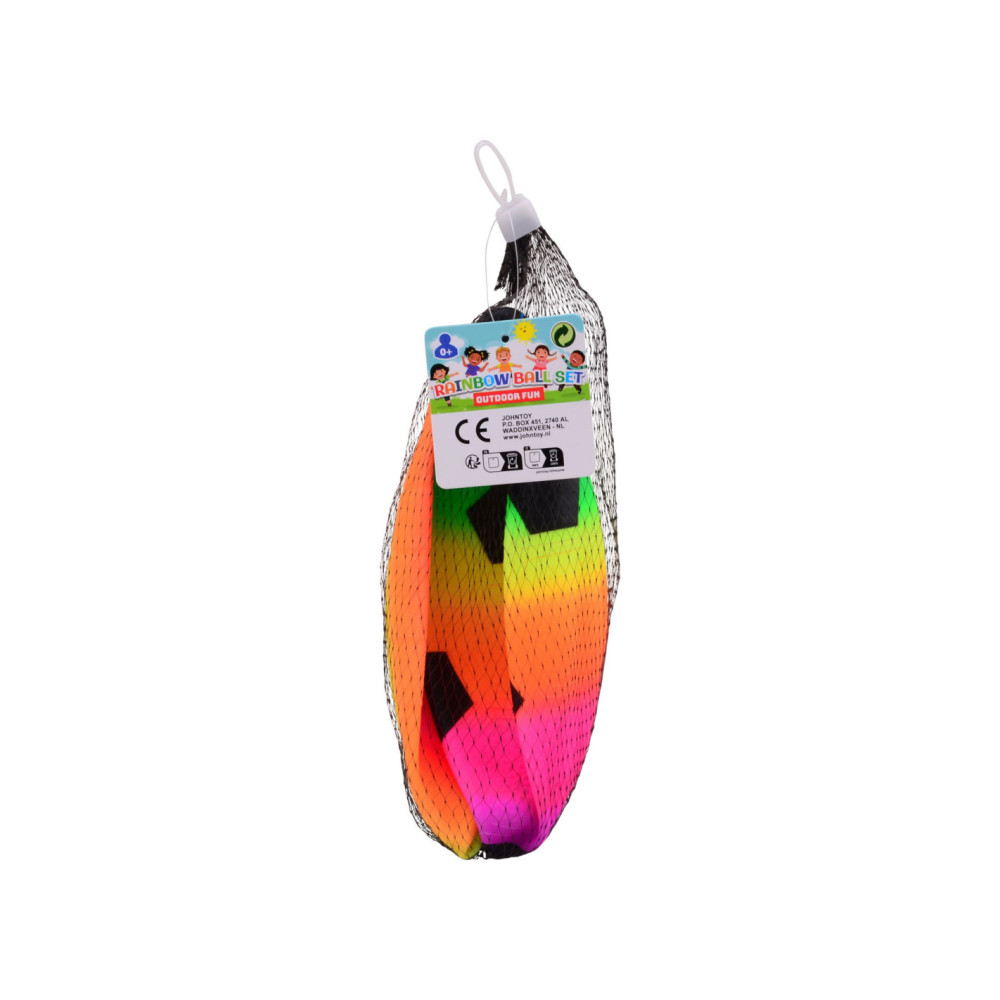 Setje van 2 regenboogkleurige ballen. Worden leeg geleverd en kunnen worden opgelblazen met een ballenpomp. Maat 3.