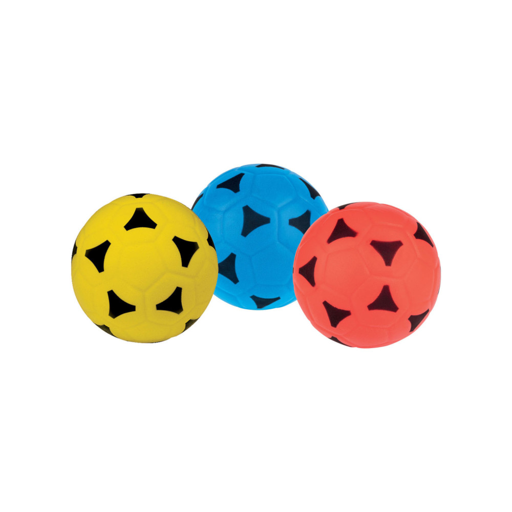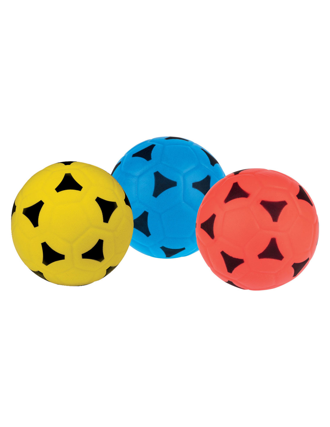 Zachte softbal van 22 centimeter groot. Verkrijgbaar in rood, groen en blauw. Geschikt vanaf 3 jaar.