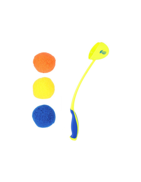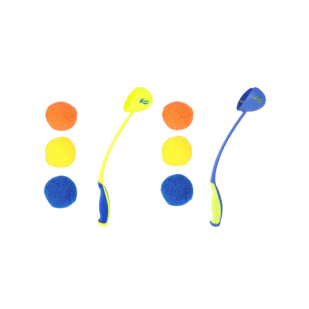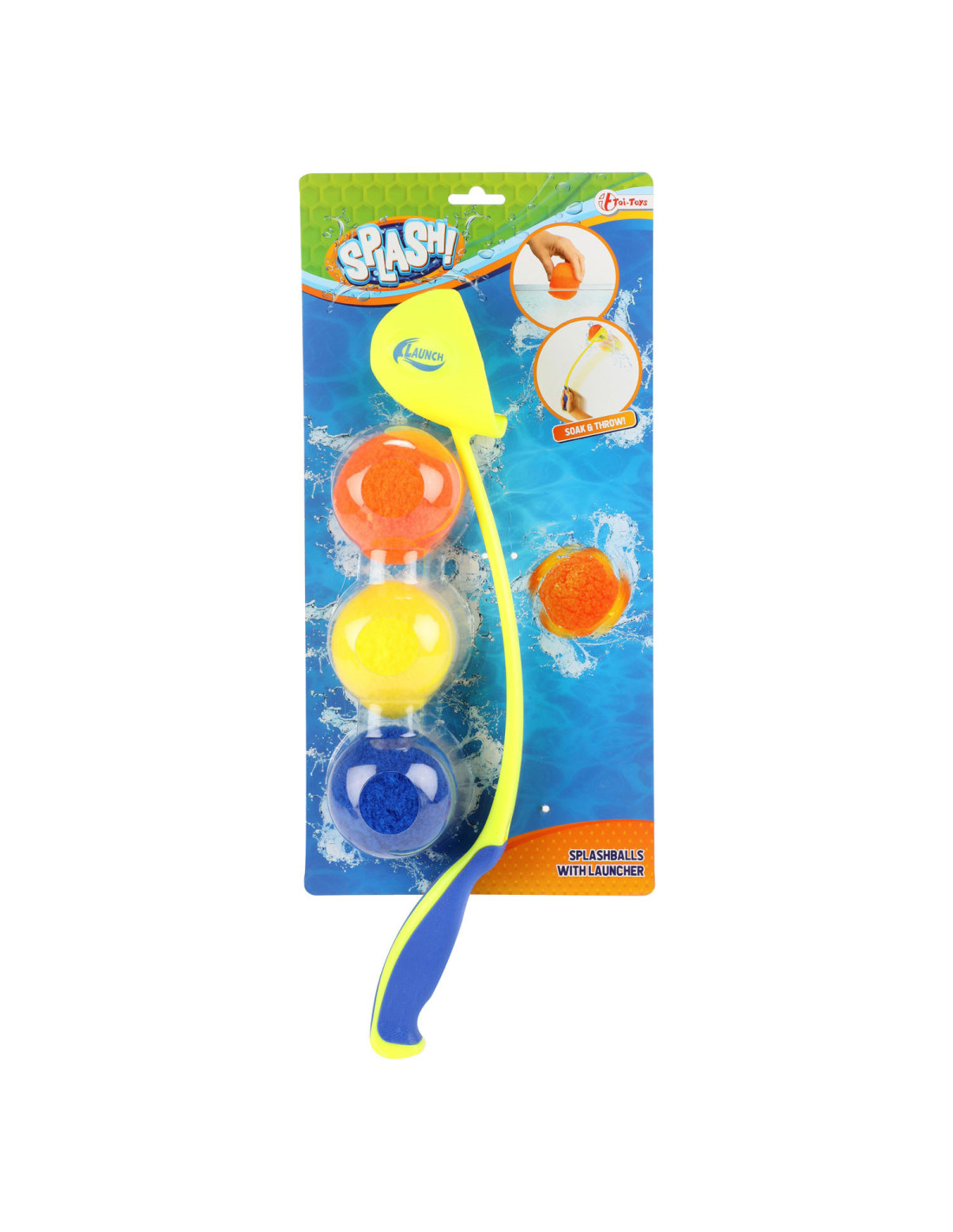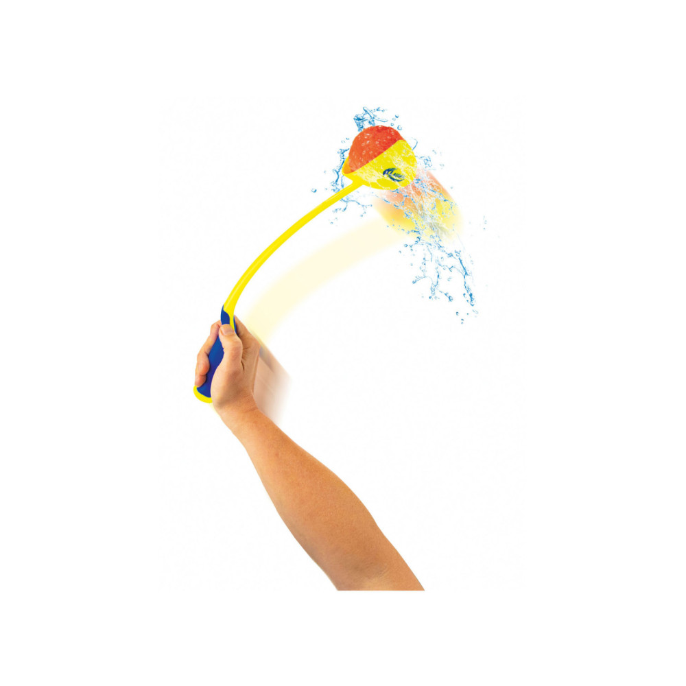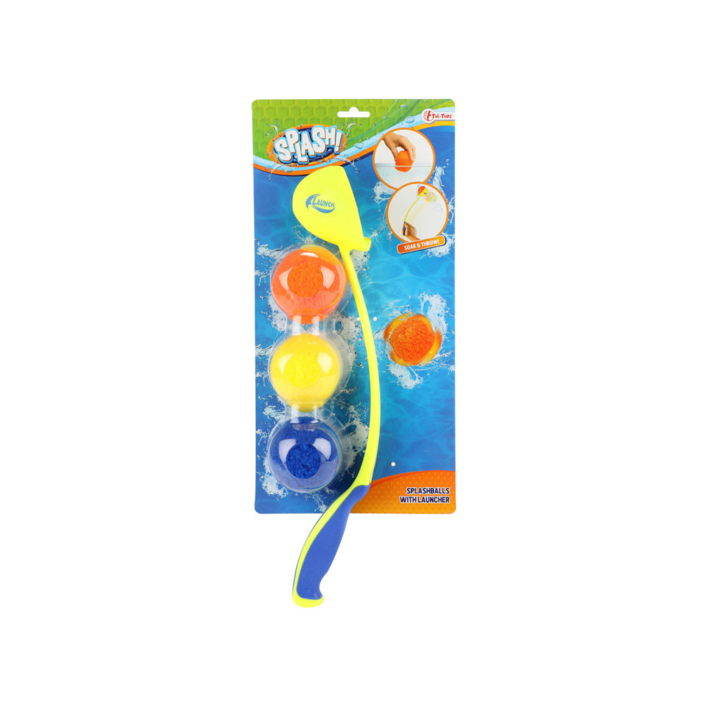 SPLASH waterballen met ballengooier. Inhoud: 3 Splash-ballen en 1 ballenwerper. De bal zuigt zich vol met water en maakt alles en iedereen nat waar hij tegenaan gegooid wordt. Verkrijgbaar in geel en blauw. Geschikt voor kinderen vanaf 6 jaar.