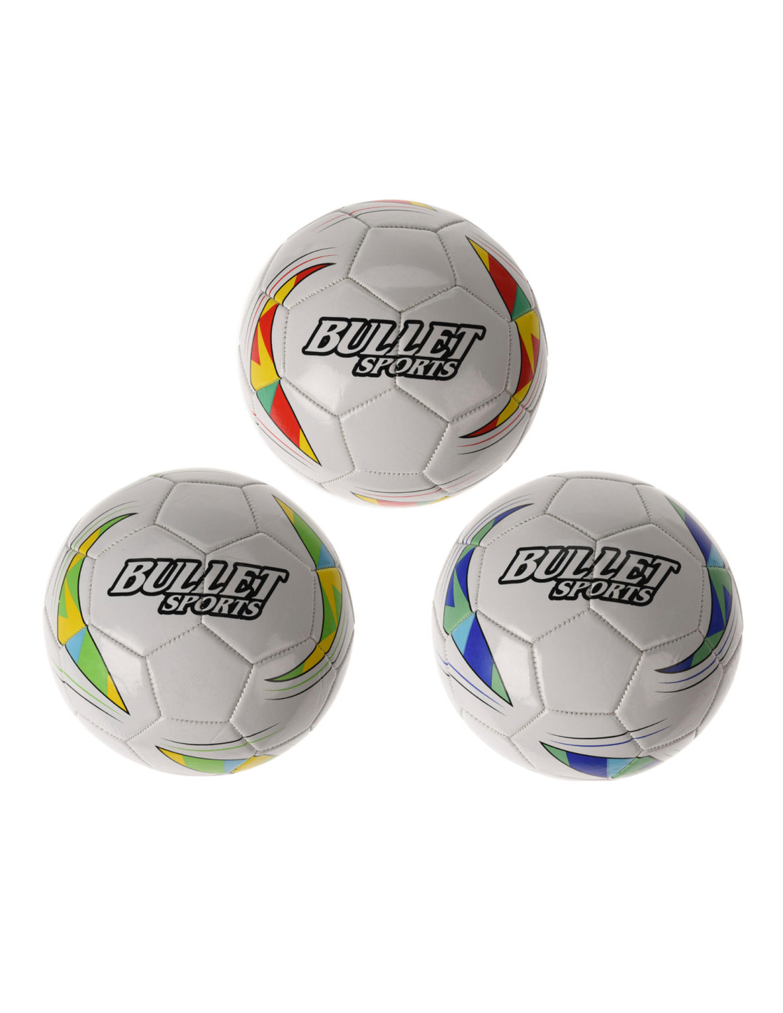 Witte voetbal met kleuraccenten (groen, blauw of rood) van 22 centimeter groot. Gewicht: ca. 330 - 350 centimeter, maat 2. Gemaakt van kunstleder.