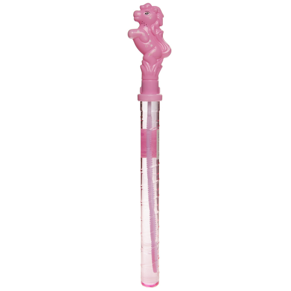Met deze magische bellenblaas is het plezier gegarandeerd! De transparante koker van de bellenblaas heeft niet alleen mooie kleuren, maar heeft ook een schattig paardje bovenop staan. Het blazen van bellen wordt nog leuker en magischer met deze unieke bellenblaas.