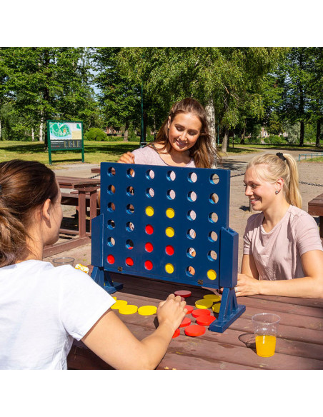 Wie het eerst vier schijven van dezelfde kleur op een rij heeft (horizontaal, verticaal of diagonaal) is de winnaar!