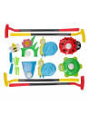Golfen wordt nog leuker met deze dieren golfset. Plaats de grappige obstakels en holes in de vorm van dieren in de tuin en het spel kan beginnen! Sla de bal, trotseer de obstakels en scoor de bal in de hole. De golfset is gemaakt van stevig kunststof en bevat 4 putters, 4 ballen, 3 obstakels en 2 holes. Het spel is geschikt voor maximaal 4 kinderen vanaf 3 jaar.