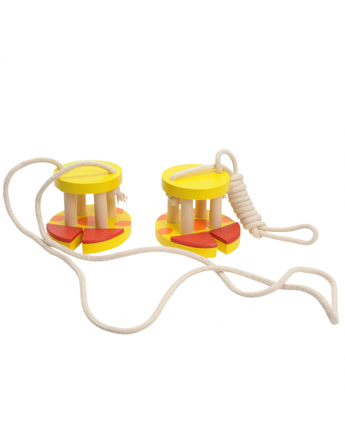 Wordt net zo lang als een giraffe. Stevige houten loopklos in de vorm van een giraffenpoot.