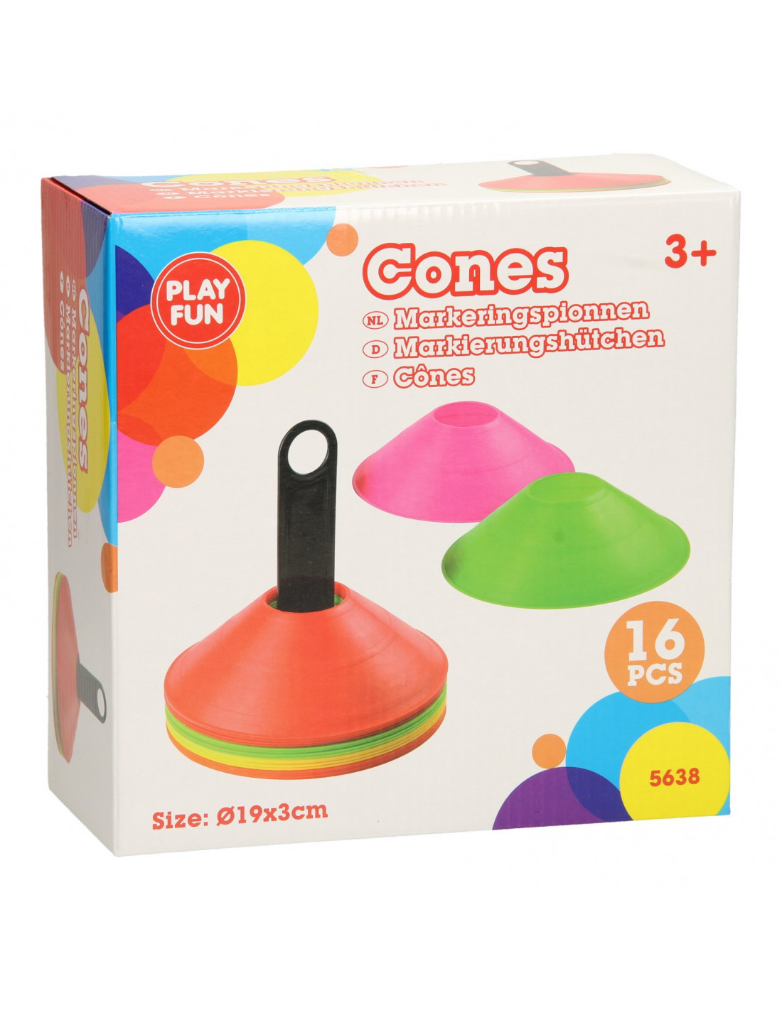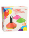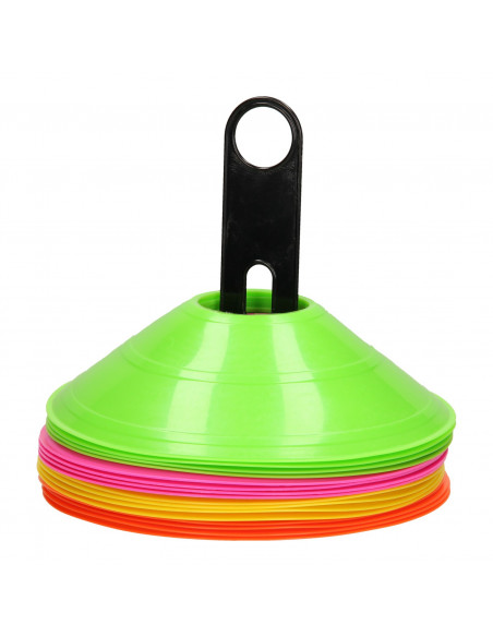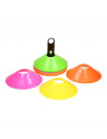 Zet een veldje uit of creëer een hindernisbaan met de Trainingshoedjes. Deze set is gemaakt van kunststof en bestaat uit een houder met 16 pionnen in 4 verschillende kleuren: 4 gele, roze, oranje en groene traningshoedjes.