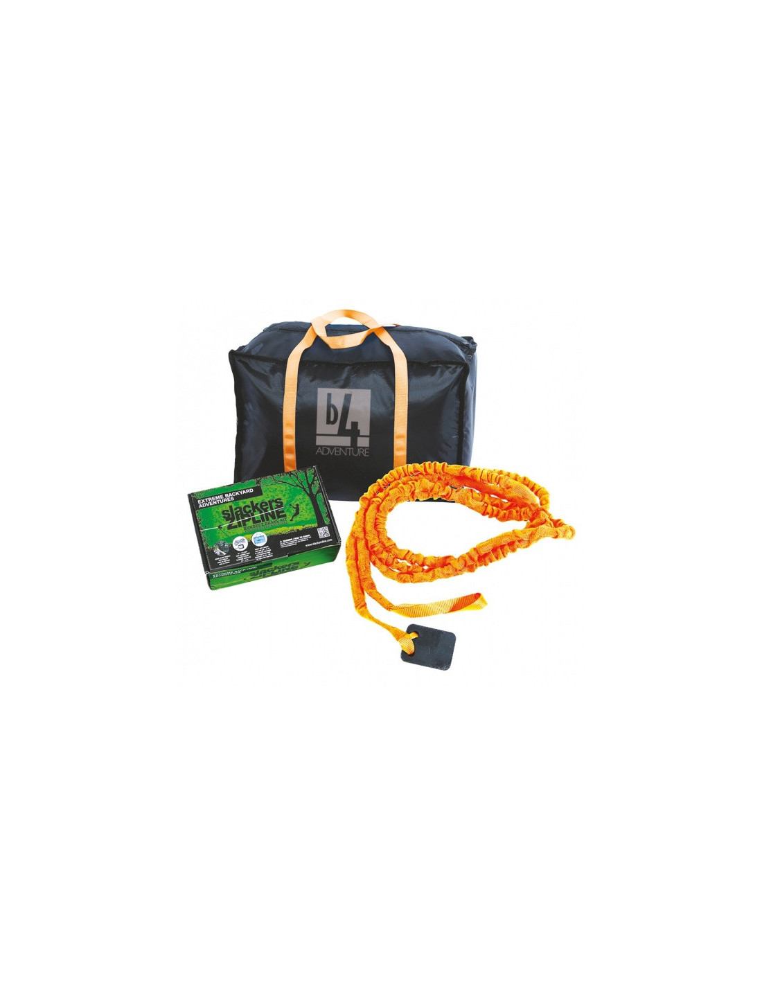 Slackers zipline bungee-remkabel Deze bungee-remkabel is bevestigd aan de zipline en remt je af als je het einde nadert. De remzak helpt om een harde klap aan het einde van de zipline te voorkomen. Lees voor het gebruik goed de bijgeleverde instructies door. Specificaties: Kleur: oranje Geslacht: junior Materiaal: elastaan, polyester Lengte kabel: 4,6 meter Inhoud: 1 Bungee-remkabel 1 Remzak 1 Handleiding