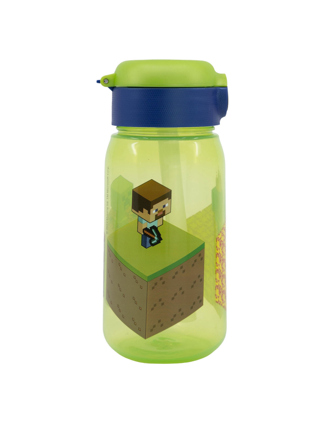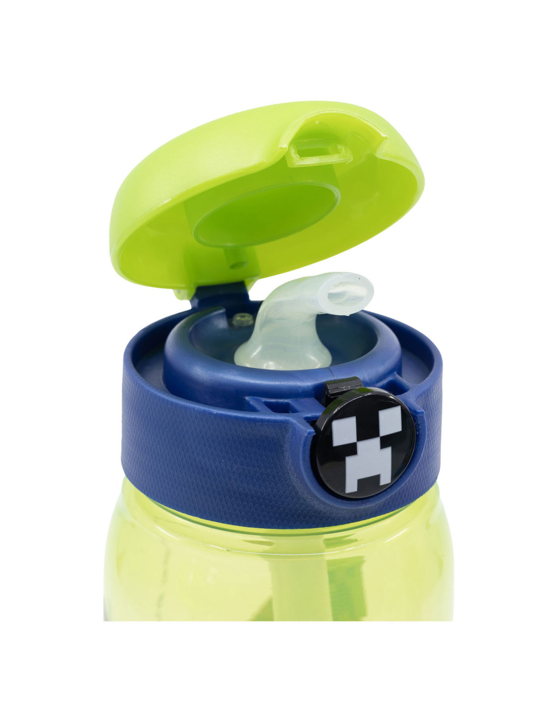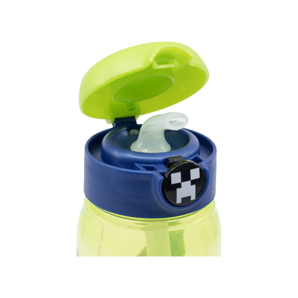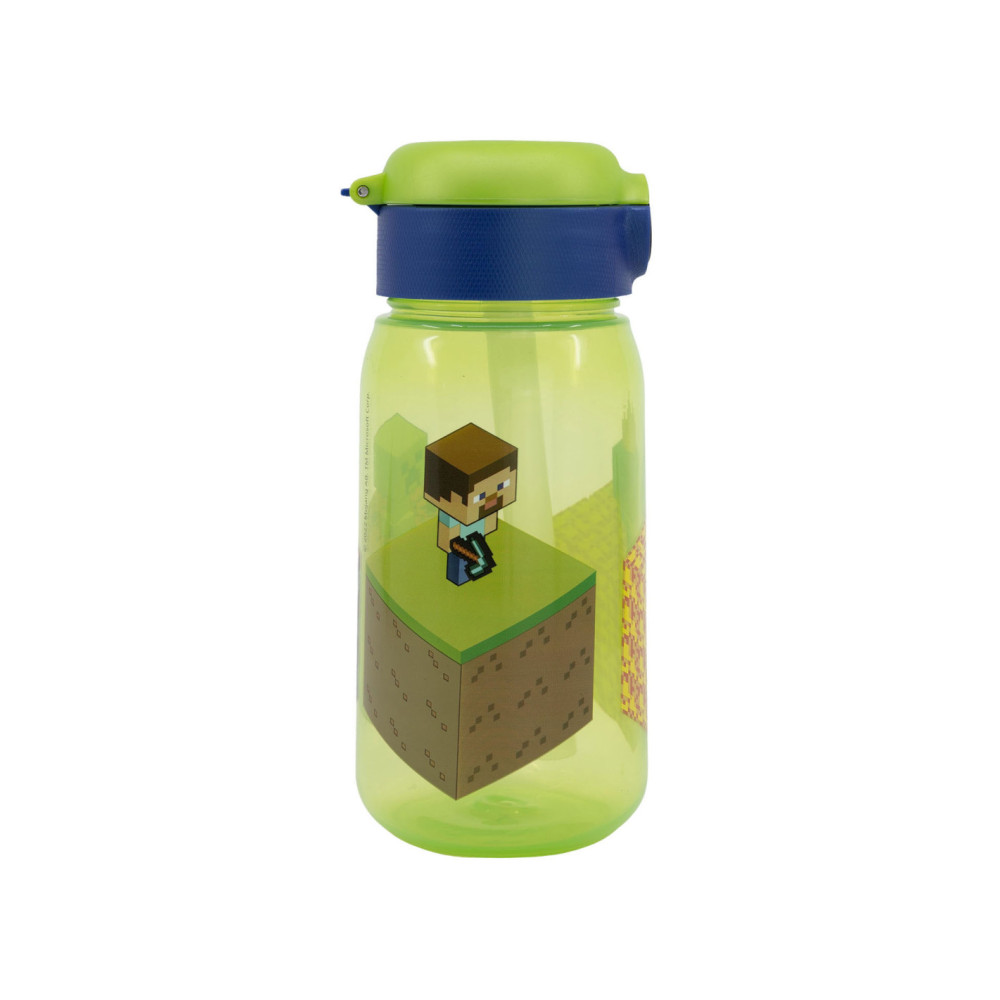 Kunststof drinkfles met print van Minecraft. De drinkfles heeft een geïntegreerd rietje dat lekvrij gesloten kan worden met de kunststof dop. Inhoud: 510 ml.