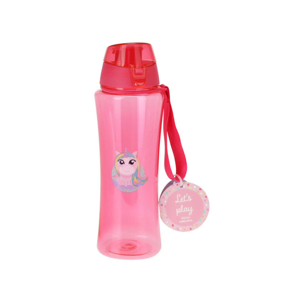 Roze drinkfles met unicorn design. Inhoud: 650ml.