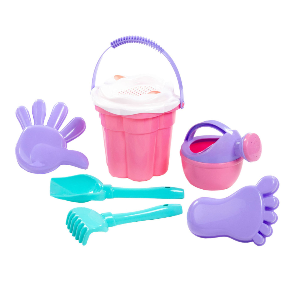 De Klassieke Emmerset Roze! Deze klassieke emmer wordt geleverd met vier essentiële gereedschappen en twee vrolijke vormen, waardoor elk speelmoment een avontuur wordt. Geschikt voor kinderen vanaf 12 maanden.