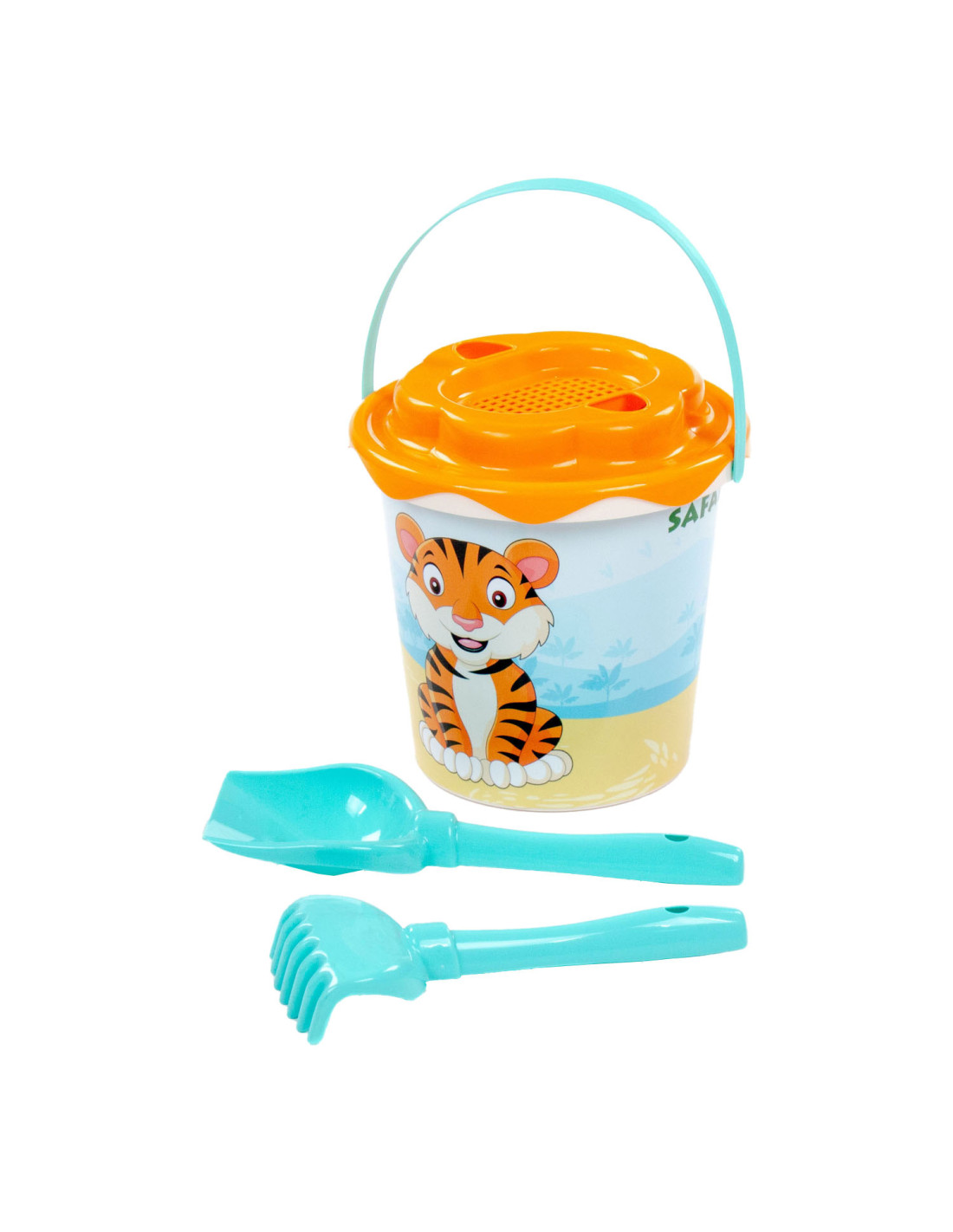 Ga voor XL speelplezier met de emmerset met 3 gereedschappen! Deze kleurrijke emmer komt met drie vrolijke gereedschappen en een schattig diertje aan de voorkant voor extra flair.