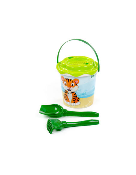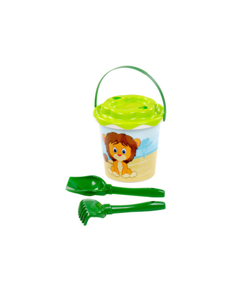 Ga voor XL speelplezier met de emmerset met 3 gereedschappen! Deze kleurrijke emmer komt met drie vrolijke gereedschappen en een schattig diertje aan de voorkant voor extra flair. Afmetingen: 18 x 17,5 x 27,5 centimeter. Geschikt vanaf 12 maanden.