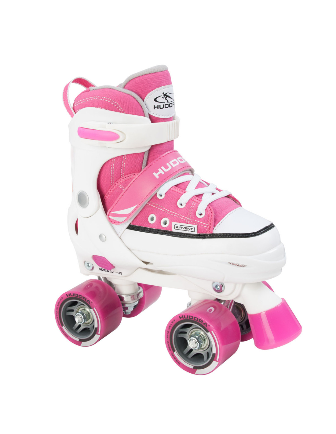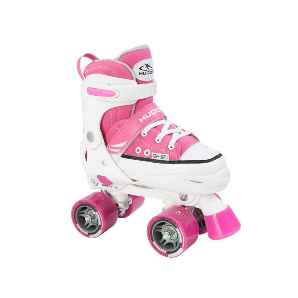 Maak de mooiste moves met deze roze verstelbare rolschaatsen van HUDORA. De rolschaatsen hebben een stevige schoen met een sportieve look. Met de witte veters, verstelbare kunststof band en een klittenband sluiting bind je de rolschaatsen stevig vast. De rolschaatsen zijn gemaakt van stevig kunststof en hebben 4 extra brede, soepele wielen. Met de grote rem aan de voorzijde ga je veilig op pad! De rolschaatsen zijn verstelbaar van maat 36 tot maat 39, waardoor je er extra lang plezier van hebt!