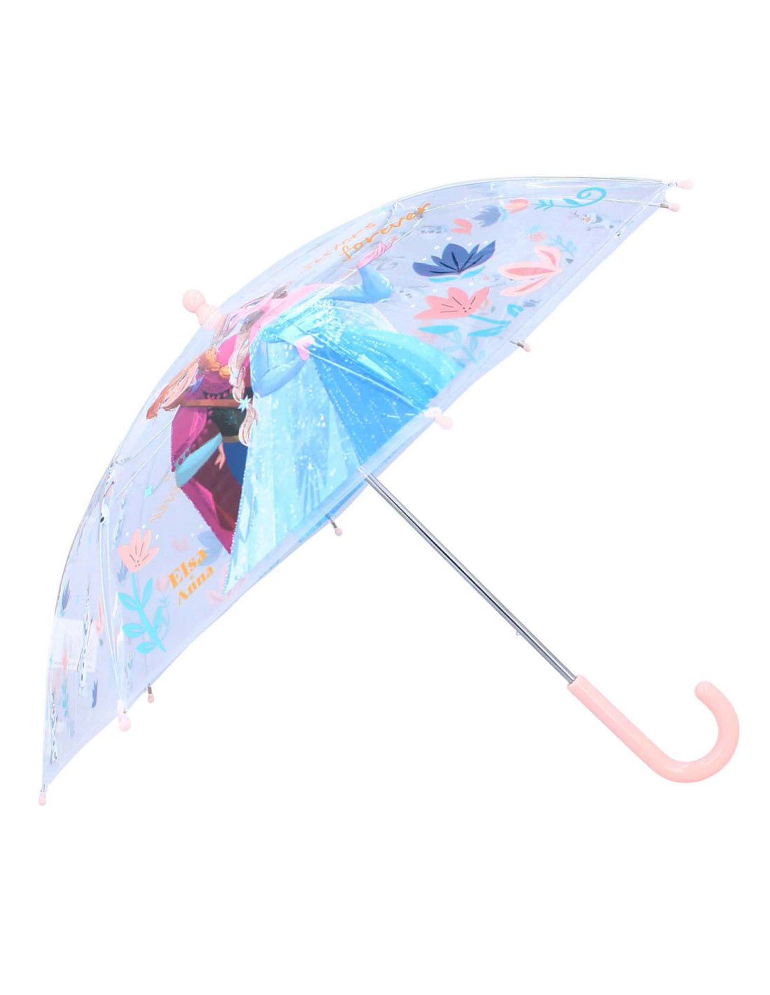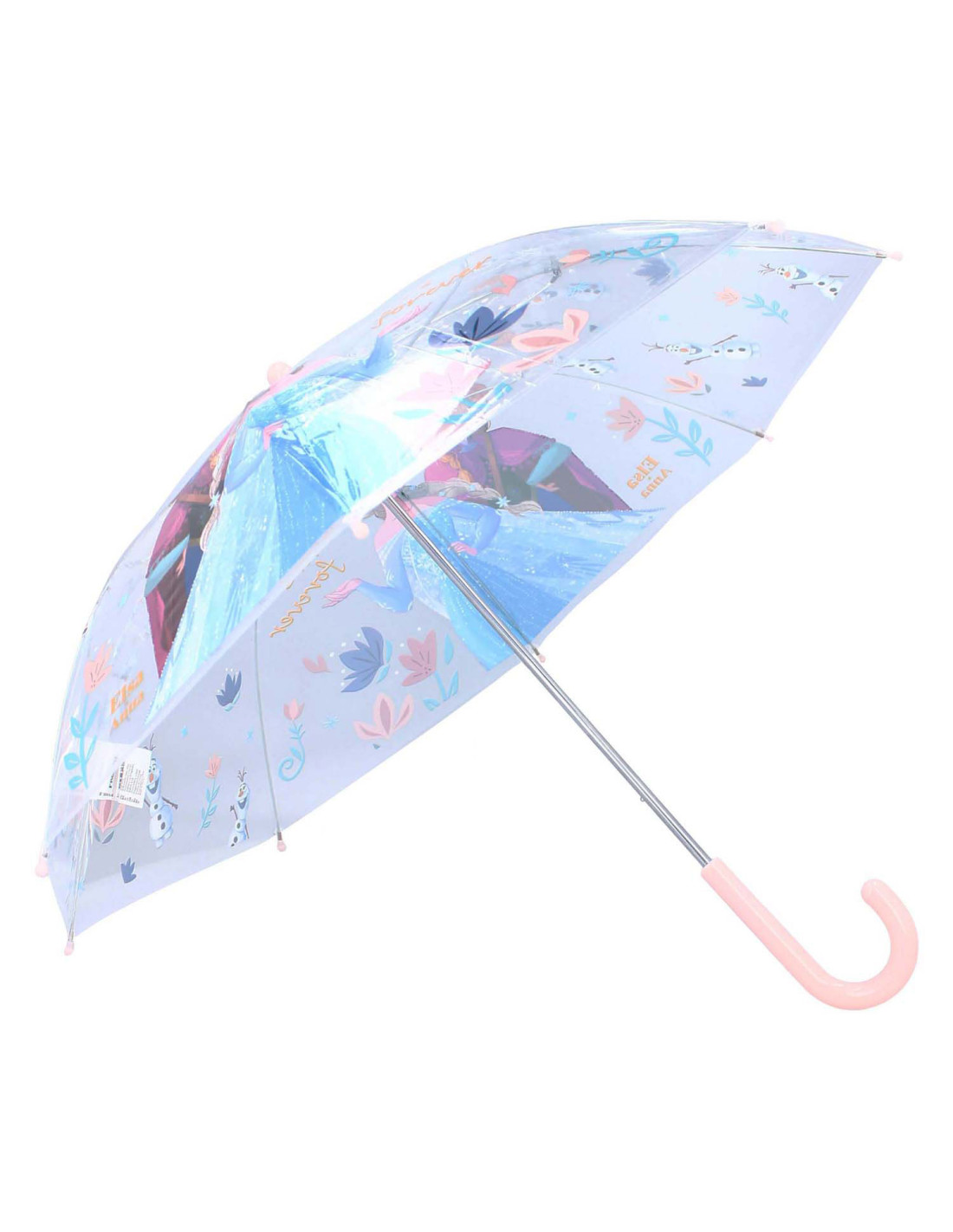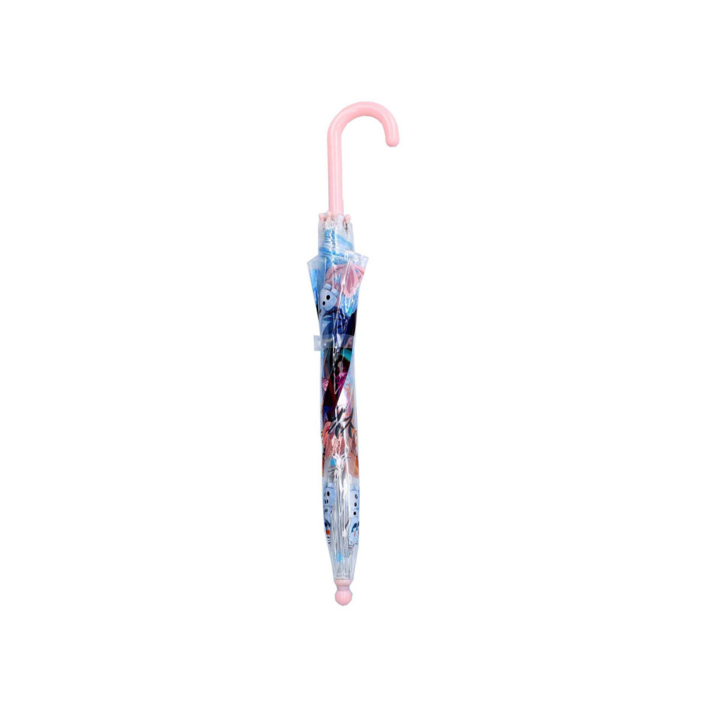 Maak kennis met de paraplu van Frozen uit de "Rainy Days" collectie! Deze transparante paraplu is een absolute must-have voor kleine fans van Elsa, Anna en Olaf. Het transparante ontwerp geeft kinderen een helder zicht op de wereld, zelfs als het giet van de regen. De stevige constructie en comfortabele handgreep maken het openen en sluiten van de paraplu eenvoudig, perfect voor kleine handjes. De lichtroze accenten voegen een vleugje kleur toe, terwijl de plaatjes van Frozen het helemaal afmaken. Voeg de paraplu van Frozen uit de "Rainy Days" collectie toe aan je assortiment en bied je klanten een product dat kinderen droog en vrolijk houdt. Deze paraplu is perfect voor jonge avonturiers die een regenbui willen trotseren met hun favoriete Frozen-personages aan hun zijde. Met deze paraplu wordt elke regenachtige dag een kans om de magie van Arendelle te ervaren! Voeg wat bevroren pracht toe aan regenachtige dagen met deze stijlvolle en functionele paraplu.