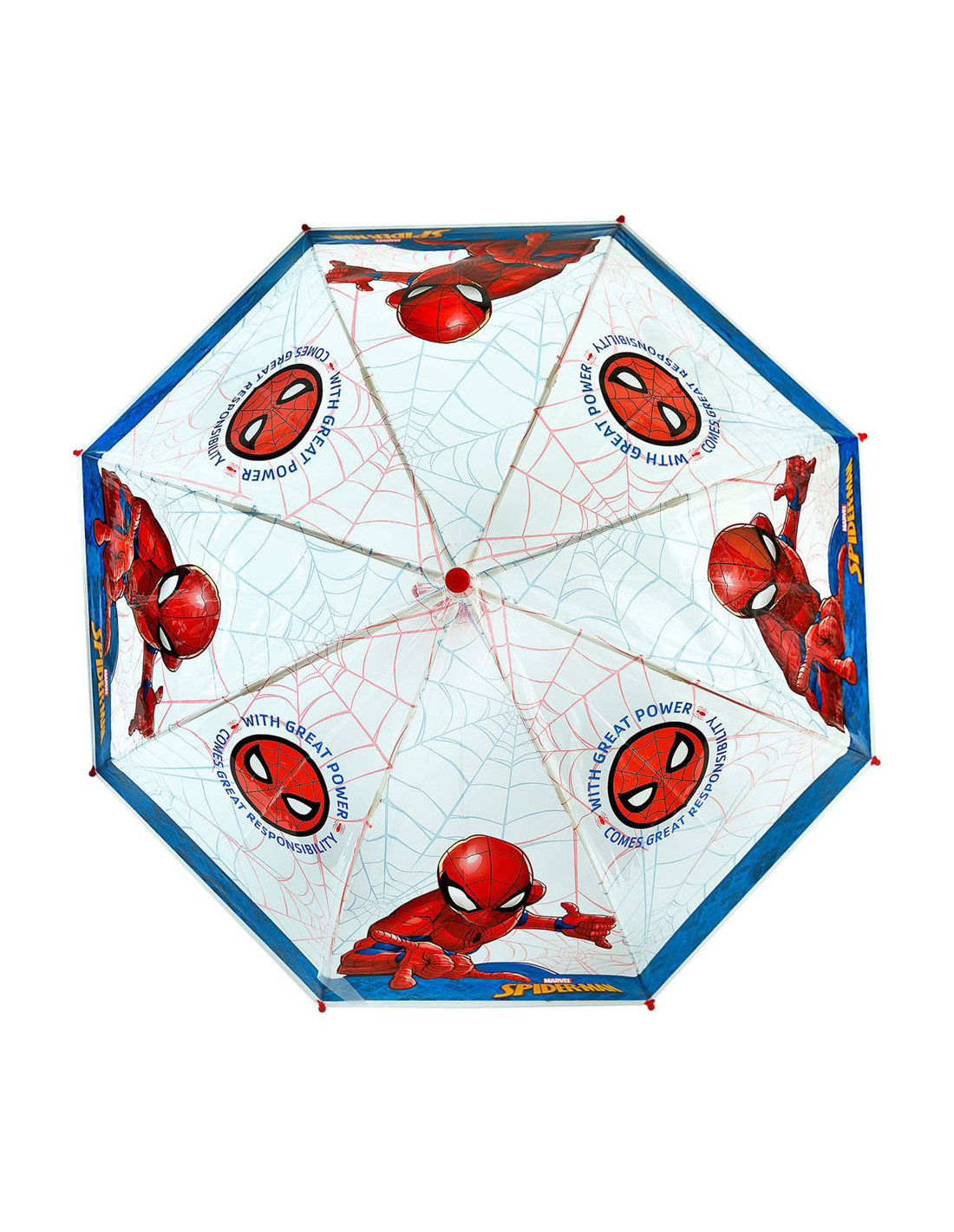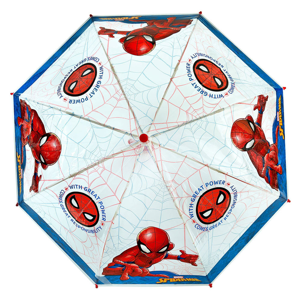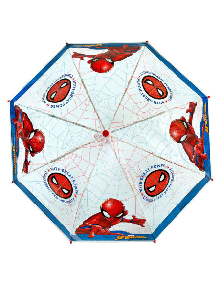 Doorzichtige paraplu van Spiderman met een doorsnede van 69 centimeter.