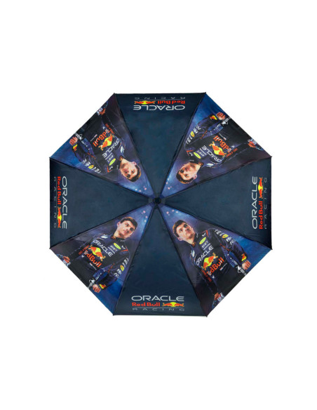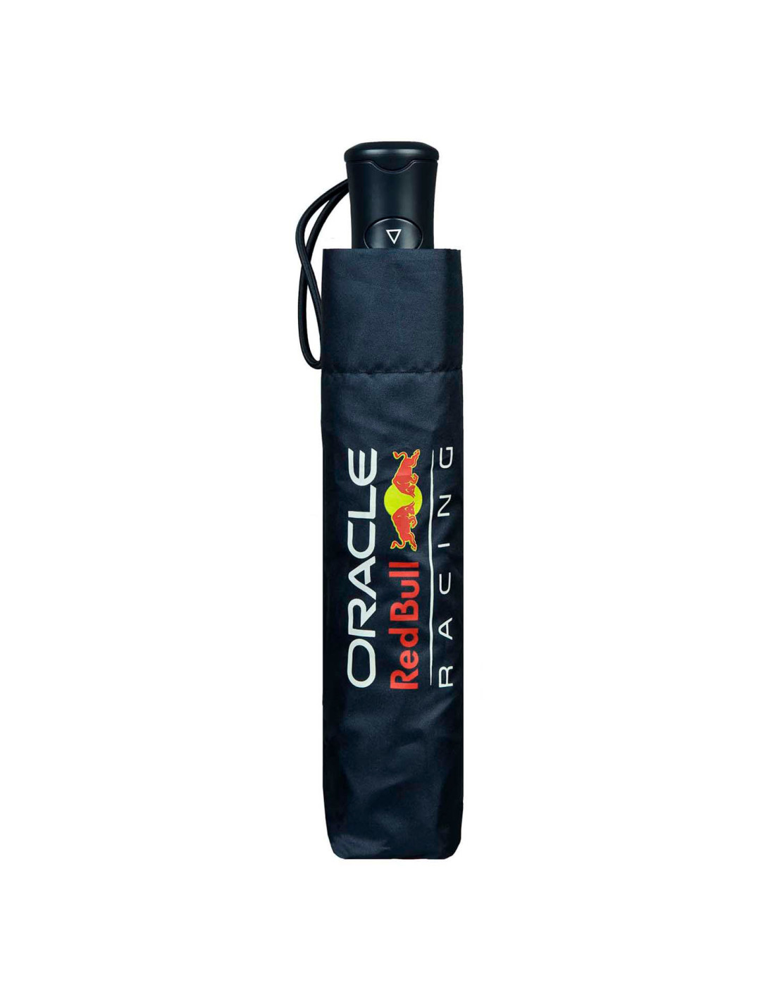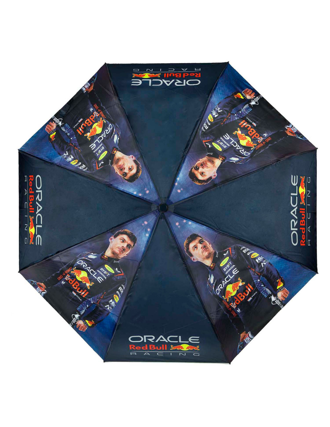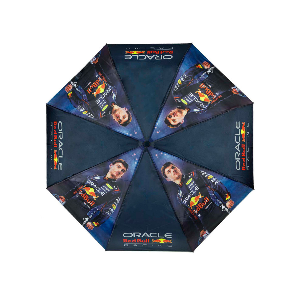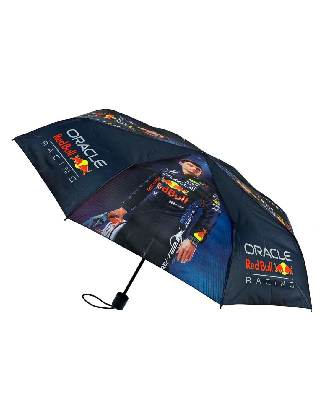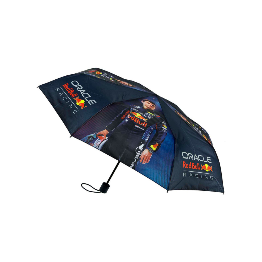 Paraplu met opberghoesje, met afbeelding van Max Verstappen en het Red Bull Racing logo erop.