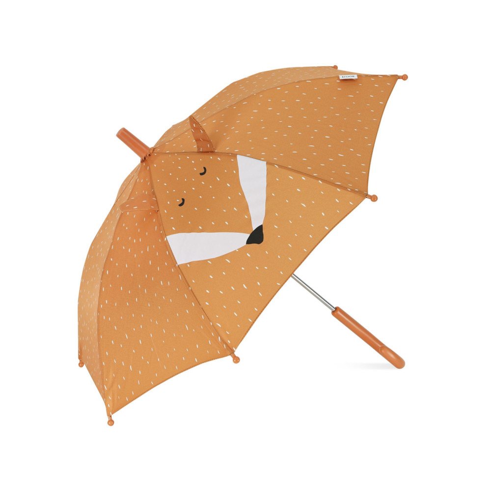 Regenpret met onze vrolijke dierenparaplu's uit gerecycleerd materiaal! Een grijze dag krijgt instant kleur met deze vrolijke dierenvrienden aan je zij! Blijf droog onder je paraplu van je favoriete dier. Je kan kiezen tussen Mr. Polar Bear, Mr. Fox, Mrs. Elephant, Mrs. Rabbit, Mr. Monkey, Mr. Crocodile & Mr. Lion. Hun flaporen wapperen vrolijk in het rond bij het springen in de plassen en dansen in de regen! De paraplu's zijn gemaakt van 100% gerecycleerd polyester. Het schuifsysteem om de paraplu te openen en te sluiten, is speciaal ontworpen voor kinderhandjes, zodat kinderen veilig en vlot de paraplu kunnen gebruiken. De paraplu heeft een sterk, kwalitatief en erg licht aluminium frame. Als de zon weer schijnt, kan je met de dierenstaart de paraplu weer netjes opbergen!