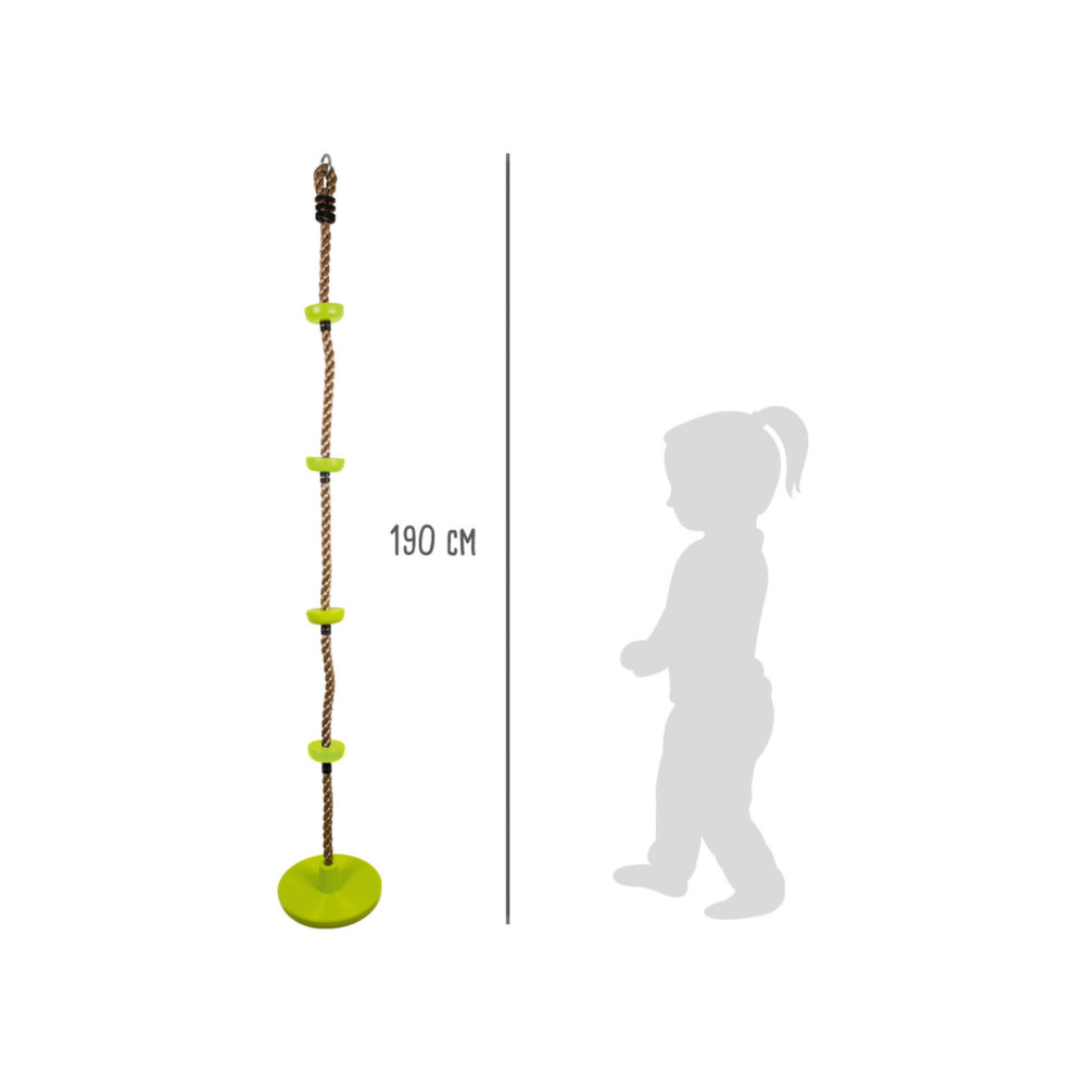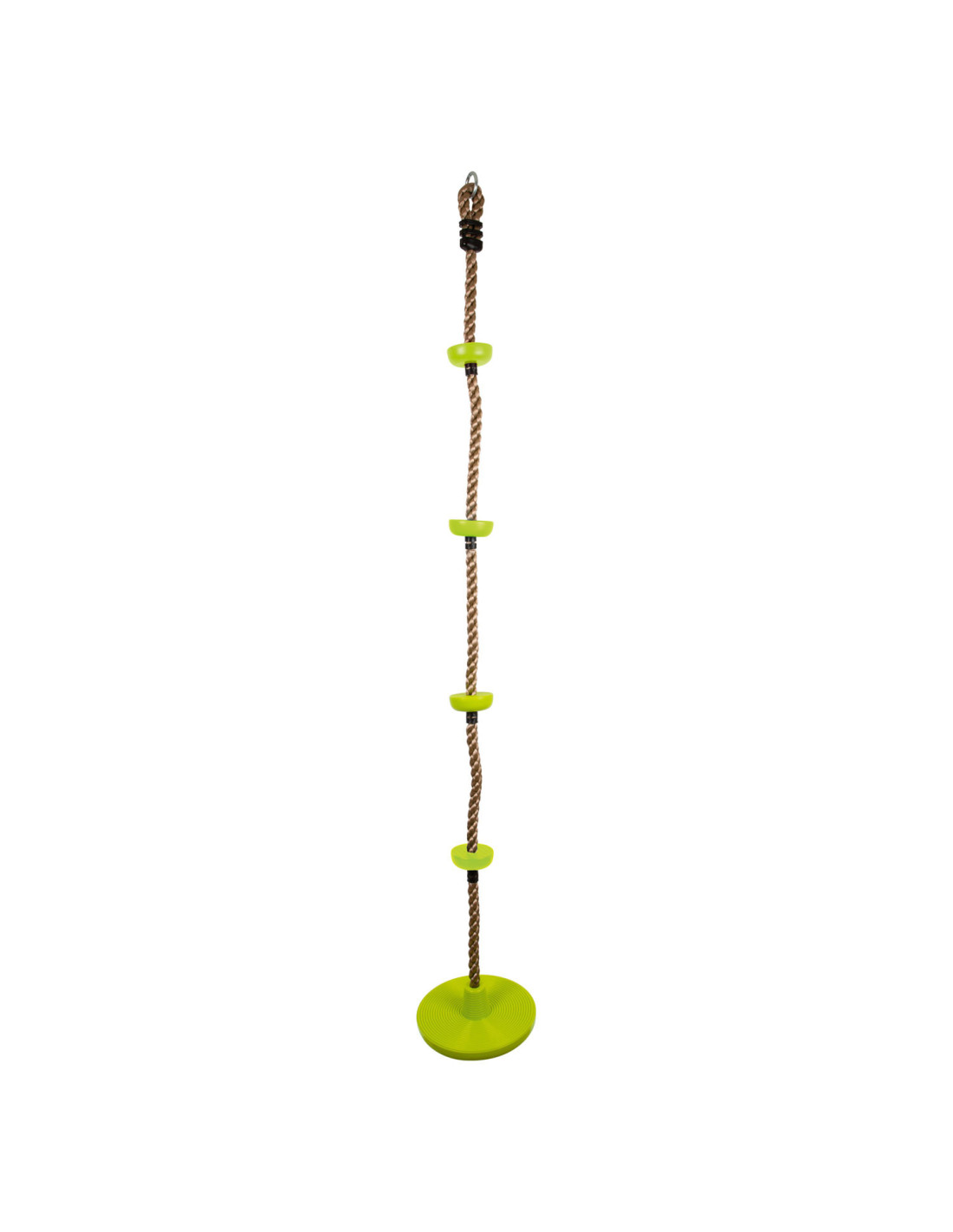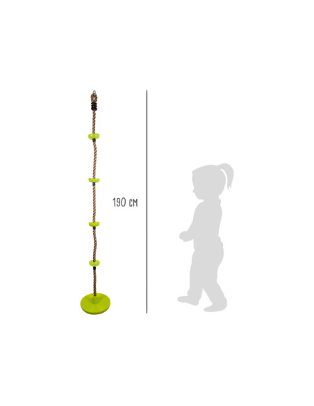 Dit multifunctionele klimtouw met natuurlijke touwlook is op 4 plaatsen voorzien van opstapjes van robuust, felgekleurd kunststof en biedt bovendien schommelplezier dankzij de schijfschommel. Het geribbelde oppervlak van de treden en de groeven op de schommel zorgen voor extra veiligheid! Wordt geleverd met luchtkussen in de dubbelwandige zitting en een ring voor montage.