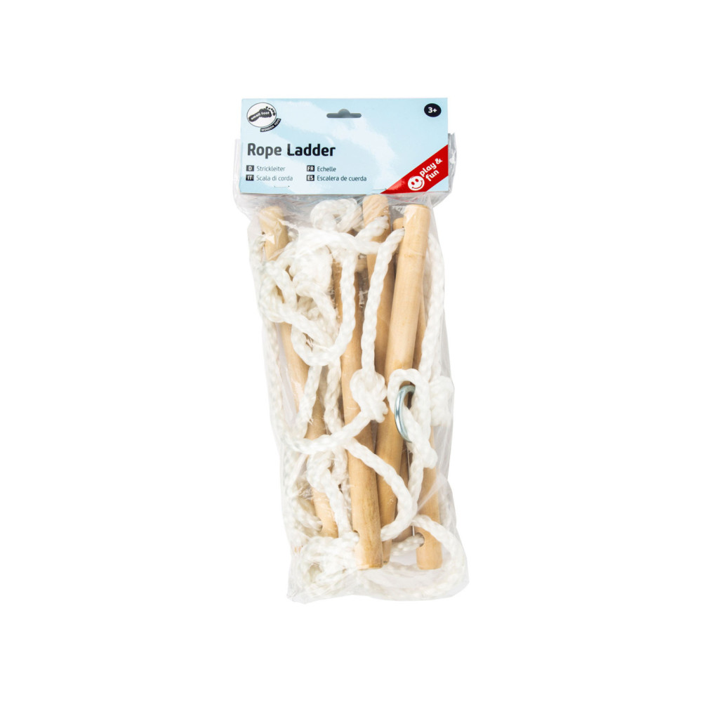 Deze ladder van hout en touw is een must voor elke boomhutbewoner! De stabiele, ronde houten treden en een robuust touw stimuleren kinderen om te klimmen en te turnen.