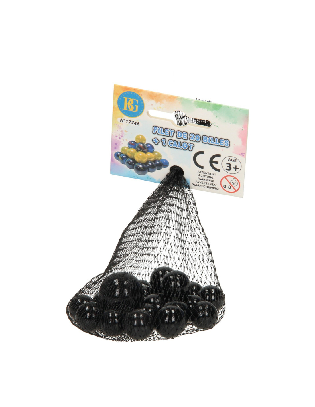 Ontdek een wereld van knikkerplezier met deze set van 20 glazen zwarte knikkers! Deze set bestaat uit 19 kleine knikkers en 1 grote knikker, waardoor er een gevarieerde verzameling knikkers is voor verschillende spelletjes en activiteiten.