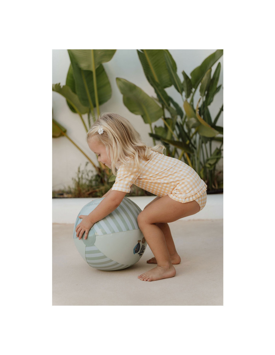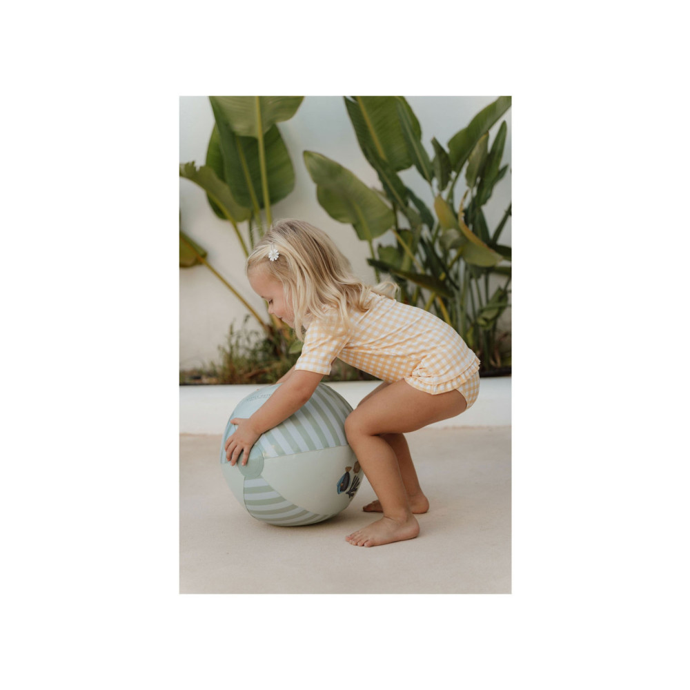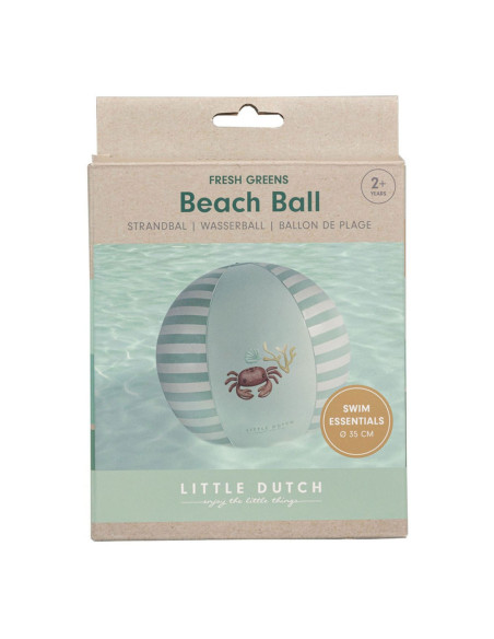 De Little Dutch Strandbal Fresh Greens is perfect voor zomerse speelmomenten. Met zijn vrolijke kleuren en frisse groene uitstraling zorgt deze strandbal voor eindeloos plezier op het strand of in het park. Gemaakt van duurzaam materiaal en met een stevige constructie is de strandbal geschikt voor allerlei activiteiten en spelletjes. Blaas de strandbal op en geniet van het gooien, stuiteren en vangen. Laat je kinderen zich vermaken en actief spelen met de Little Dutch Strandbal Fresh Greens. Een must-have accessoire voor elke zomeravontuur! Diameter: ca. 35 cm. Verpakt in een full-colour doos. Geschikt voor kinderen vanaf 24 maanden.