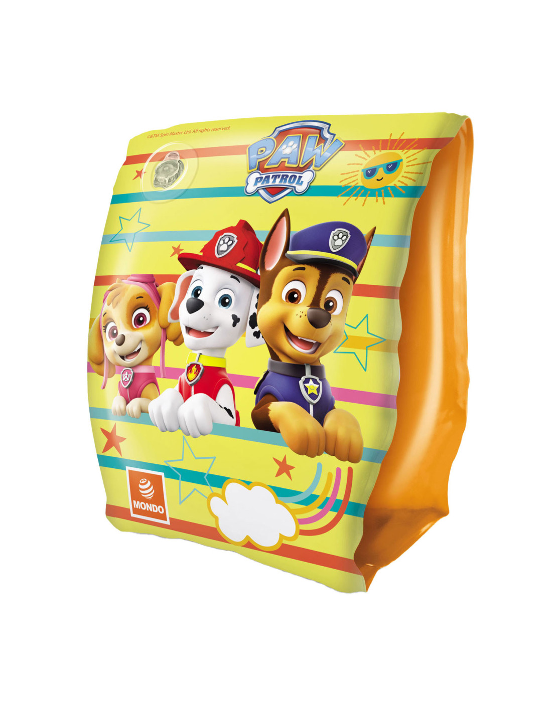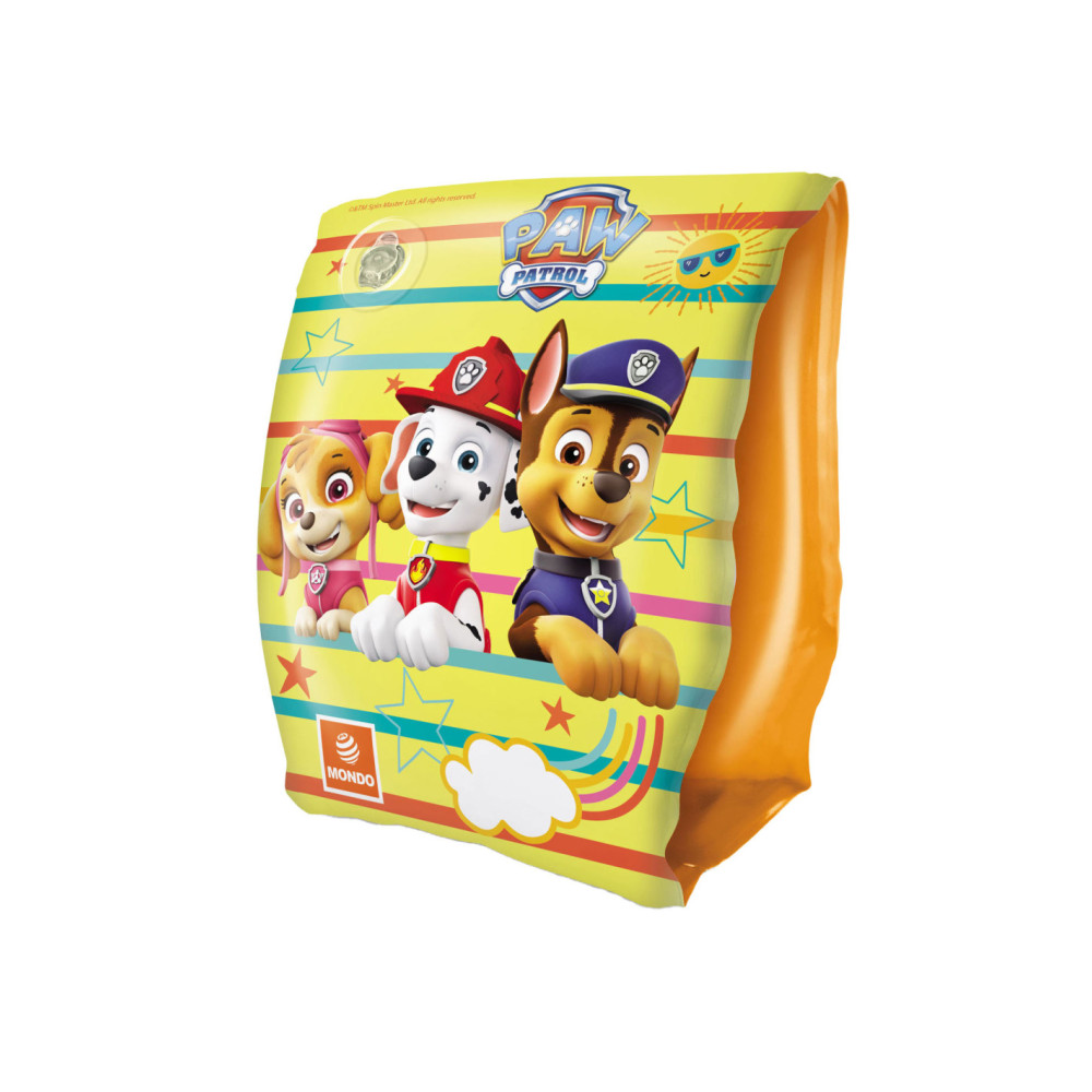 Gele zwembandjes met Skye, Marshall en Chase van PAW Patrol erop afgebeeld. Afmeting: 15 bij 23 cm.