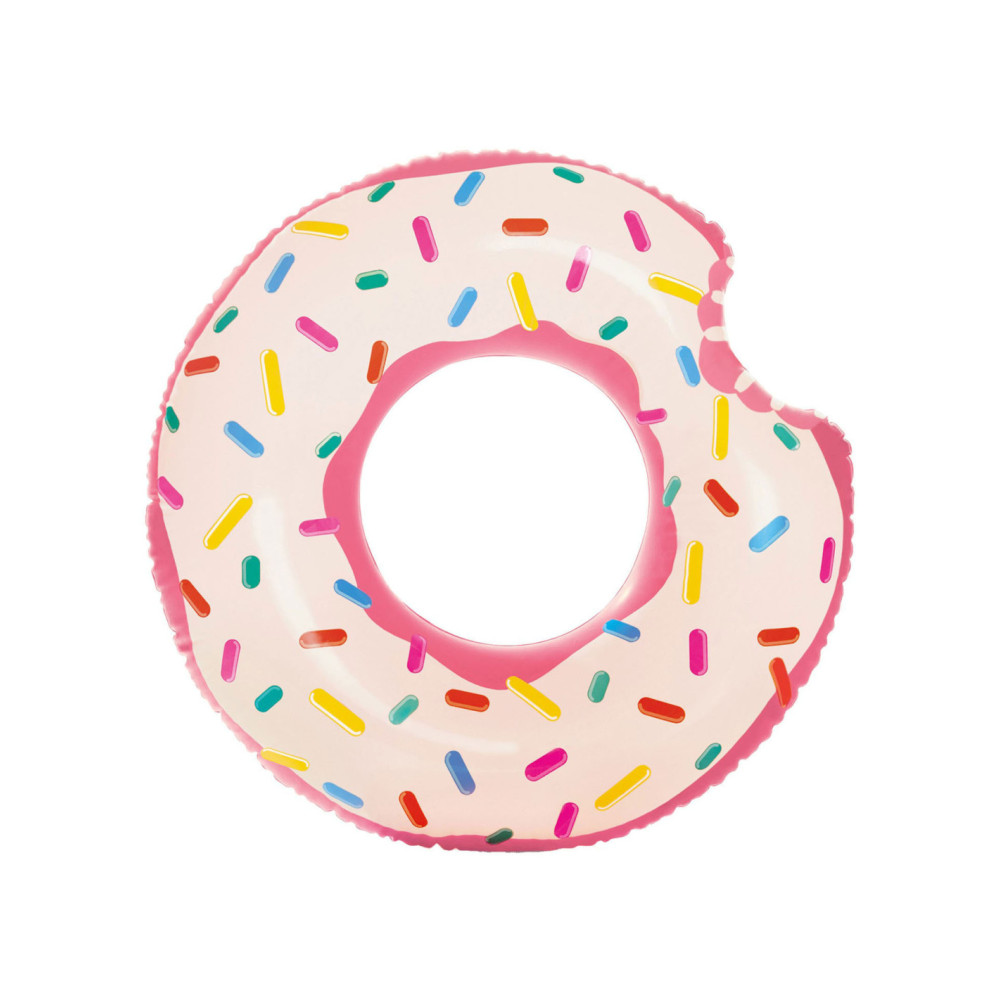 Grote Intex luchtband, voorzien van een grappig donut design. Vervaardigd uit stevig 0,25 mm dik vinyl. Heeft een doorsnede van 107 cm.