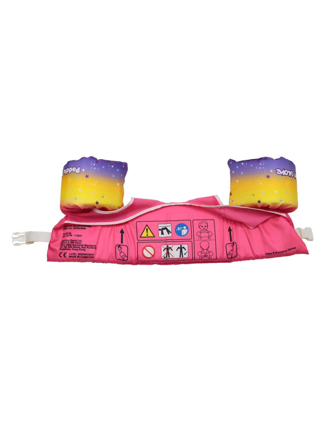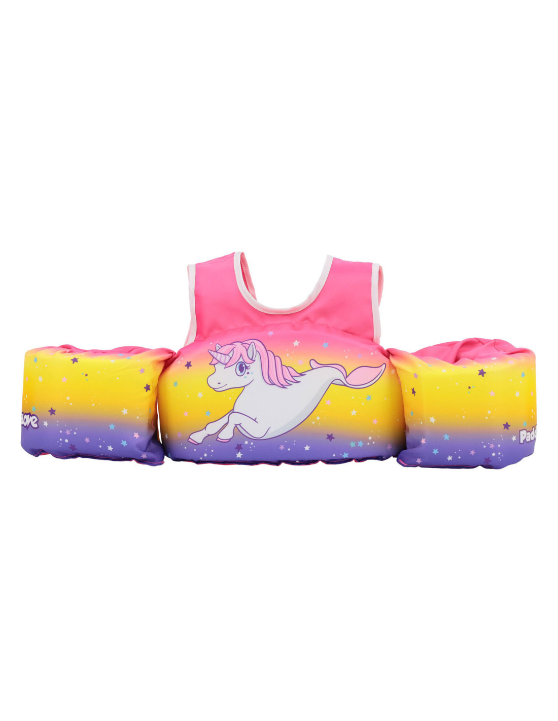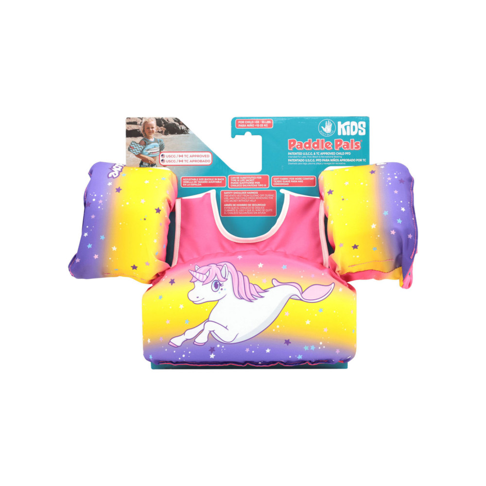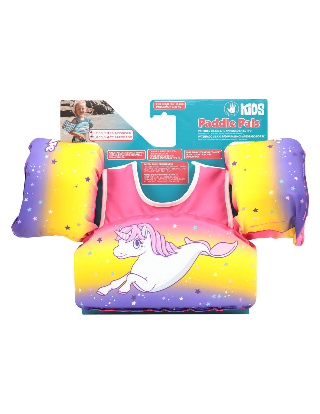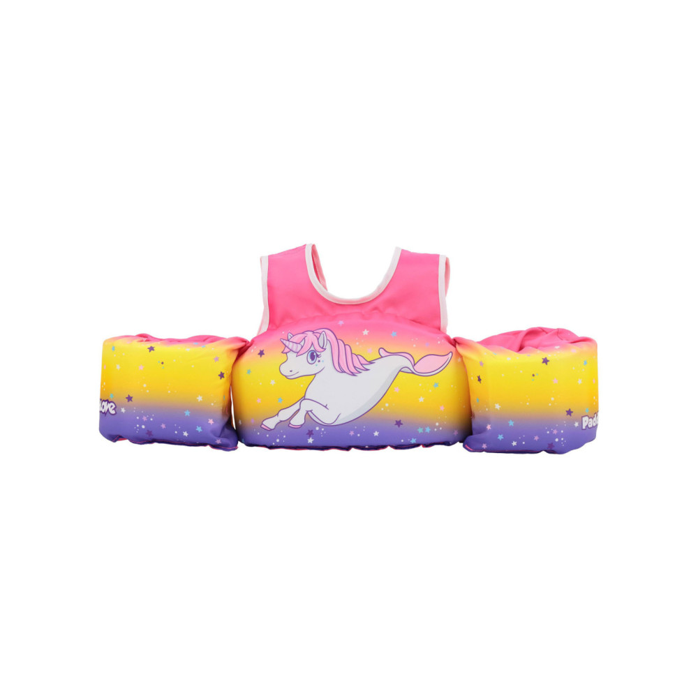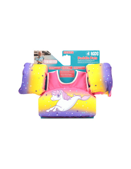 De Paddle Pal unicorn is een gepatenteerd zwem- drijfvest met mouwtjes en verstelbare gesp. Perfect voor gebruik in en om het water. Het zachte en duurzame polyester materiaal is fijn om te dragen op de huid. Dit product is een hulpmiddel en dient altijd gebruikt te worden onder toeziend oog van een volwassen persoon. Wordt geleverd op card met eurlog. Geschikt voor 15-30kg. Adviesleeftijd 3-6 jaar.
