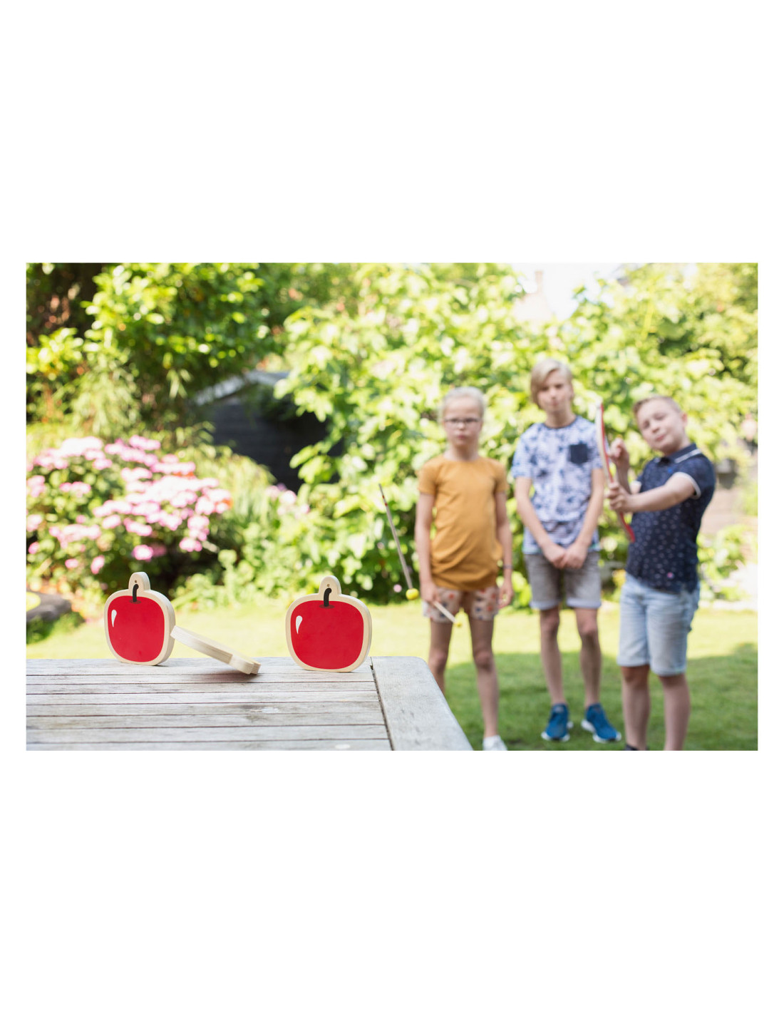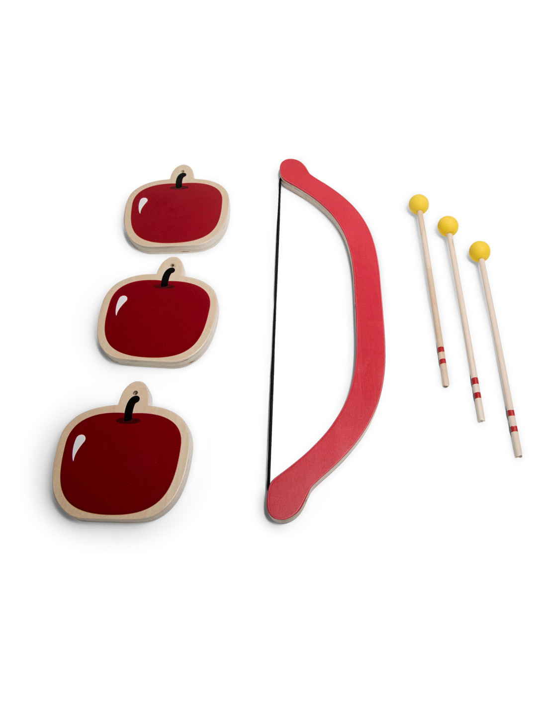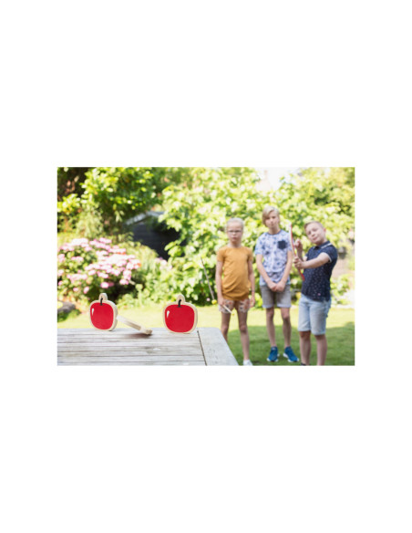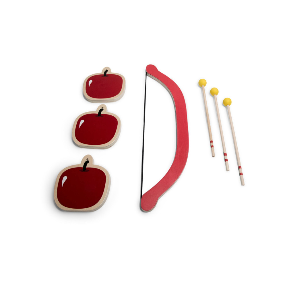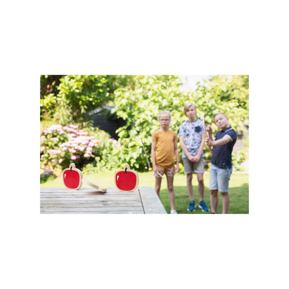 De drie sappige rode houten appels staan te glimmen in de zon, deze wil je toch niet missen? Steek de pijl in de boog, trek hem strak en zorg ervoor dat je een echte boogschutter wordt zoals Robin Hood!