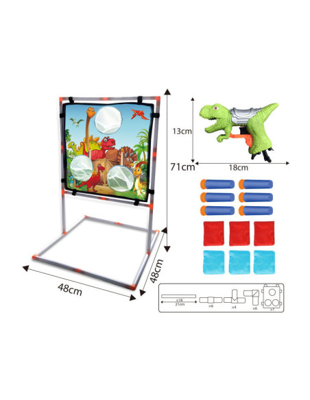 2in1 Schieten & Gooien Dino. Schieten met foam kogels en gooien met zakjes.