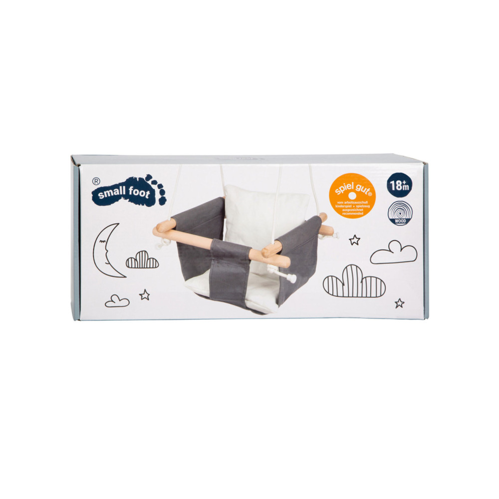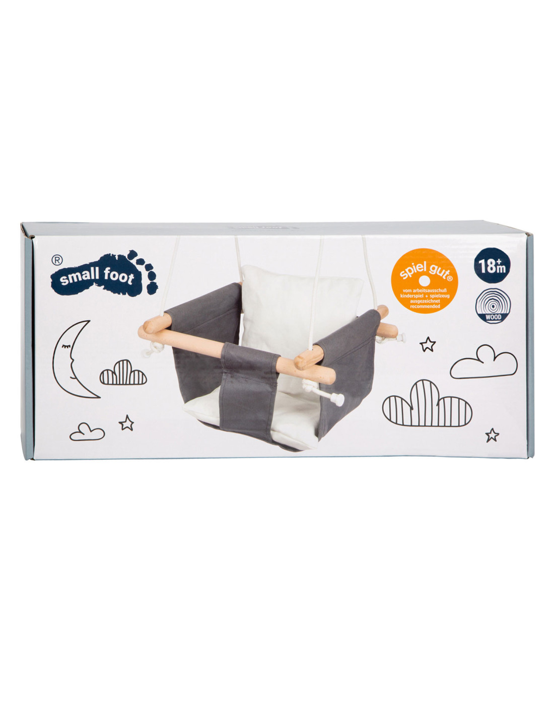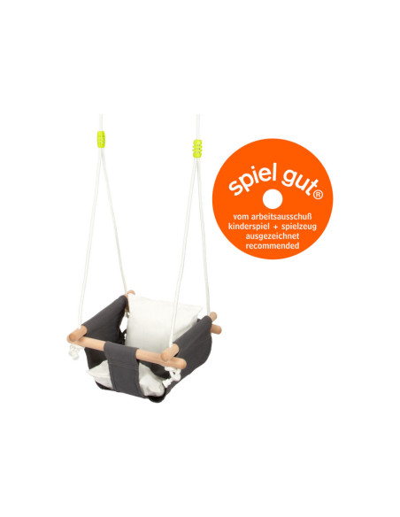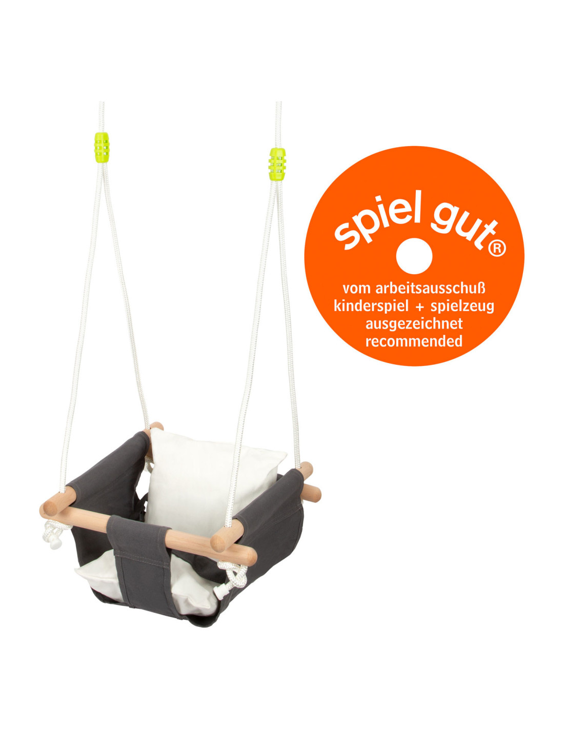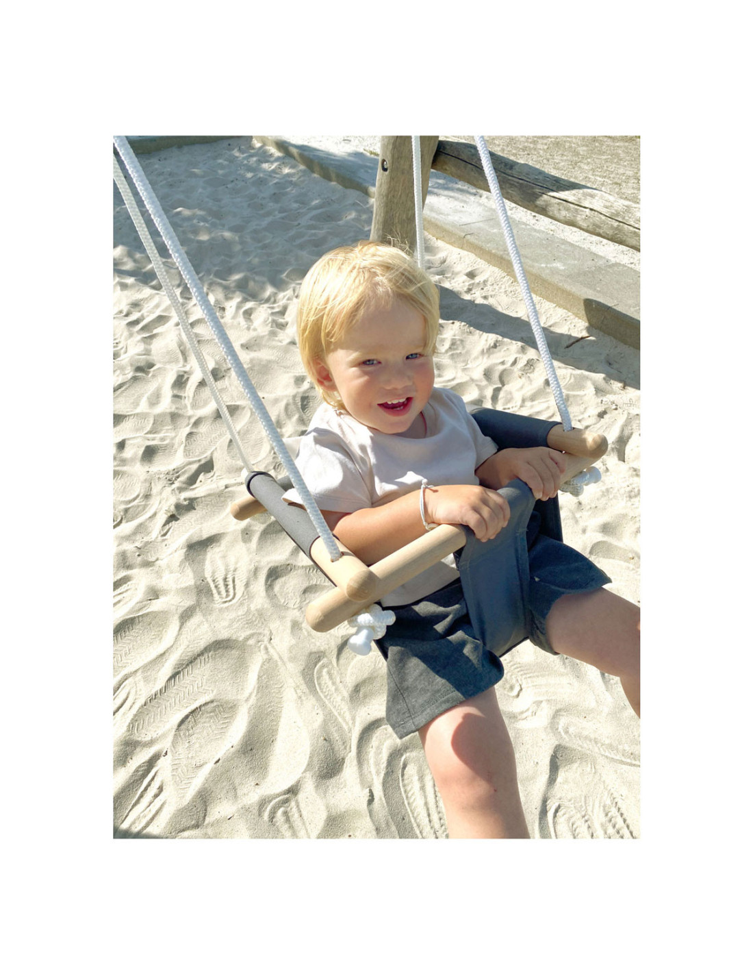 Deze schommel van hoogwaardig beukenhout is tegelijkertijd een rustige plek en de lievelingsplek van baby's. Vier dwarsbalken en een in lengte verstelbare riem geven structuur en ondersteuning, en de onderhoudsvriendelijke geweven stof past zich optimaal aan de lichaamsvorm van een baby aan. Het simpele, moderne design en het subtiele kleurdesign maken van deze babyschommel een echte eyecatcher in de kinderkamer. Voorgemonteerd en klaar om te zwaaien. Met robuuste, in lengte verstelbare touwen en metalen ringen en karabijnhaken om op te hangen en te monteren. En deze schommel groeit mee! Met het kussen is de zitting kleiner te maken, ideaal voor jongere kinderen vanaf 18 maanden. Later kan het kussen worden verwijderd.
