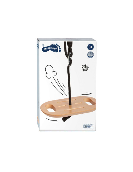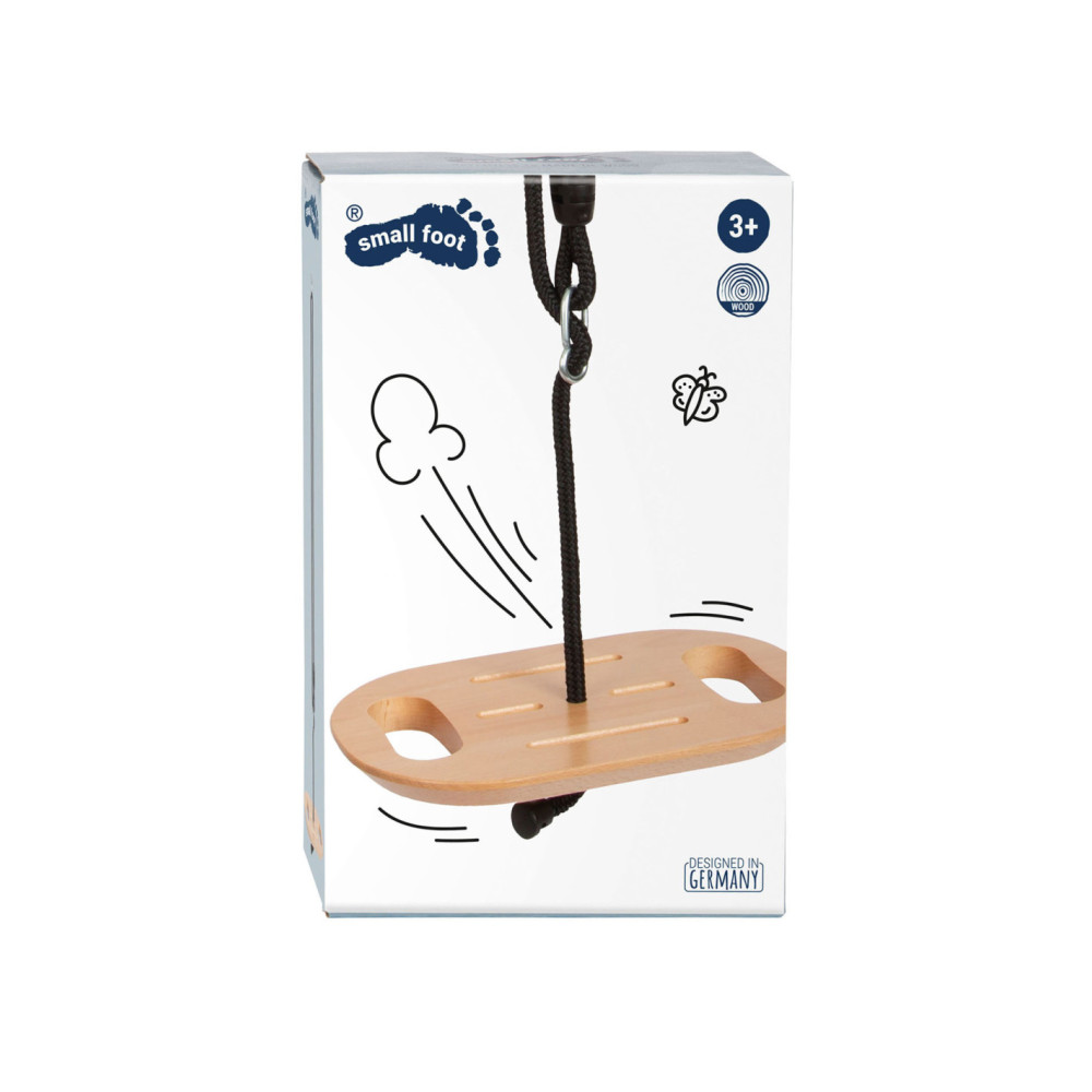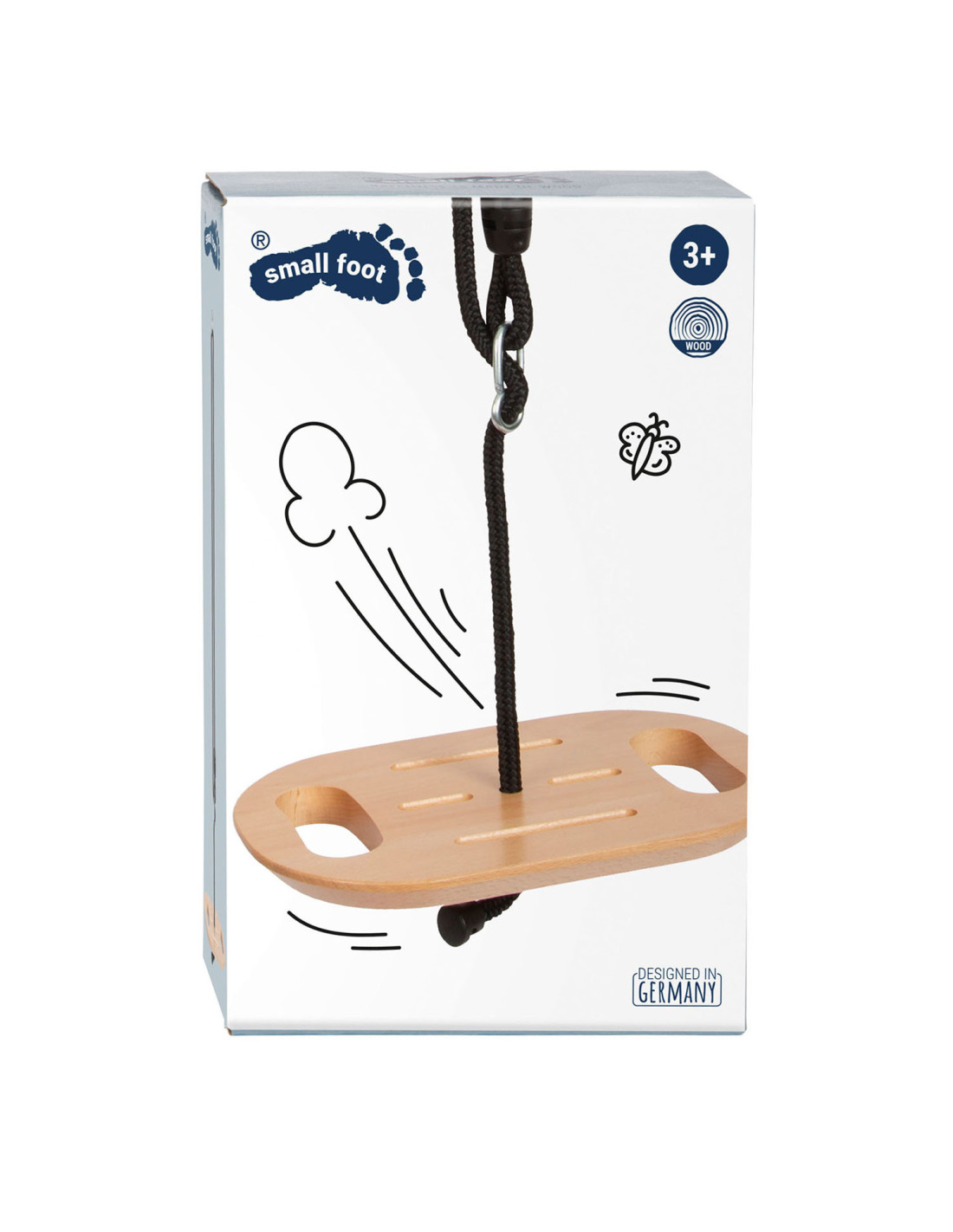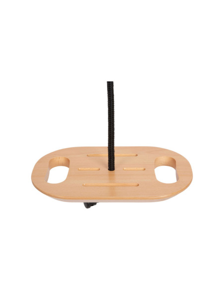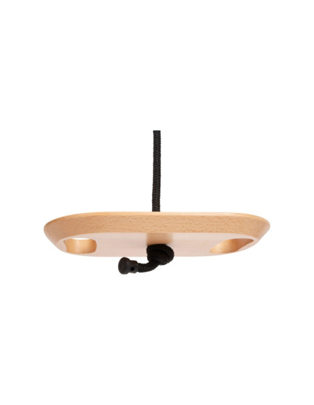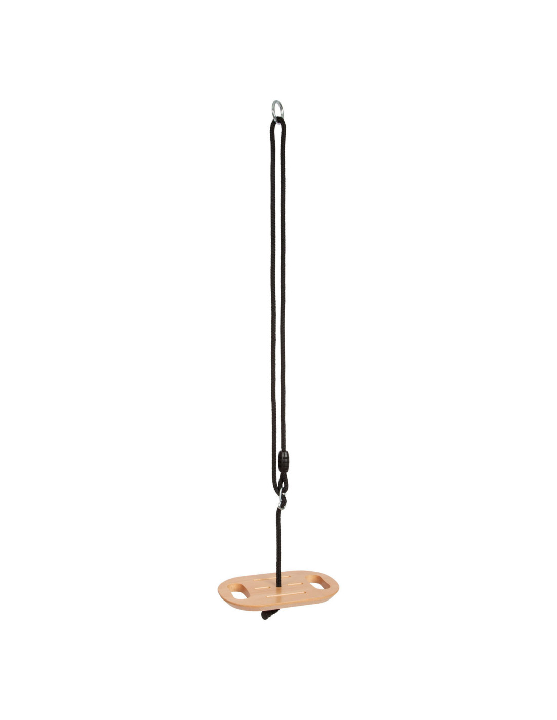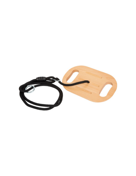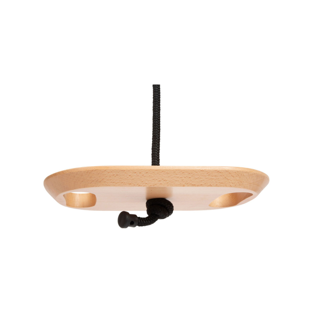Schommelplezier tijdens het hangen en zitten! Deze schijfschommel is een absolute blikvanger, gemaakt van robuust massief hout gecombineerd met puur zwarte touwen en kan zowel zittend als hangend aan de handgrepen worden gebruikt. Randen op het zitvlak zorgen voor een veilige zitplaats, terwijl het robuuste, grijpbare kunststof touw veilig kan worden vastgehouden. Dankzij een metalen ring kan deze in lengte verstelbare schommel snel worden opgehangen en afgebroken. Hij kan tot 100 kg gewicht dragen en is daarom ook geschikt voor volwassenen.