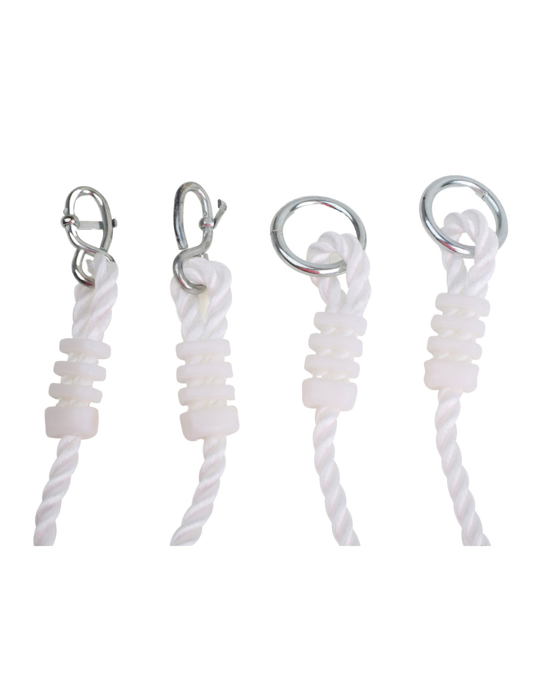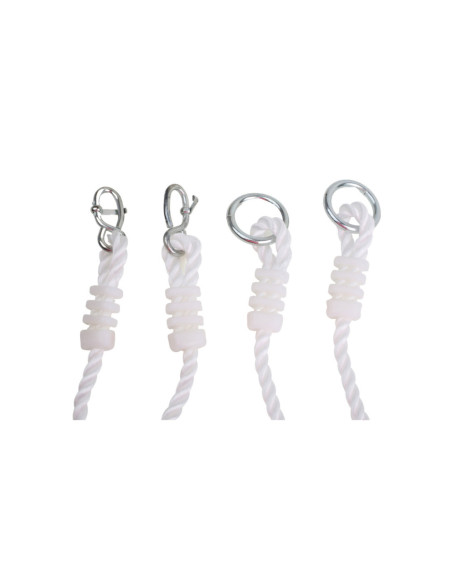 Eenvoudige montage met bevestigingsringen. De lengte van de touwen is verstelbaar en kan worden aangepast aan de beschikbare ruimte.
